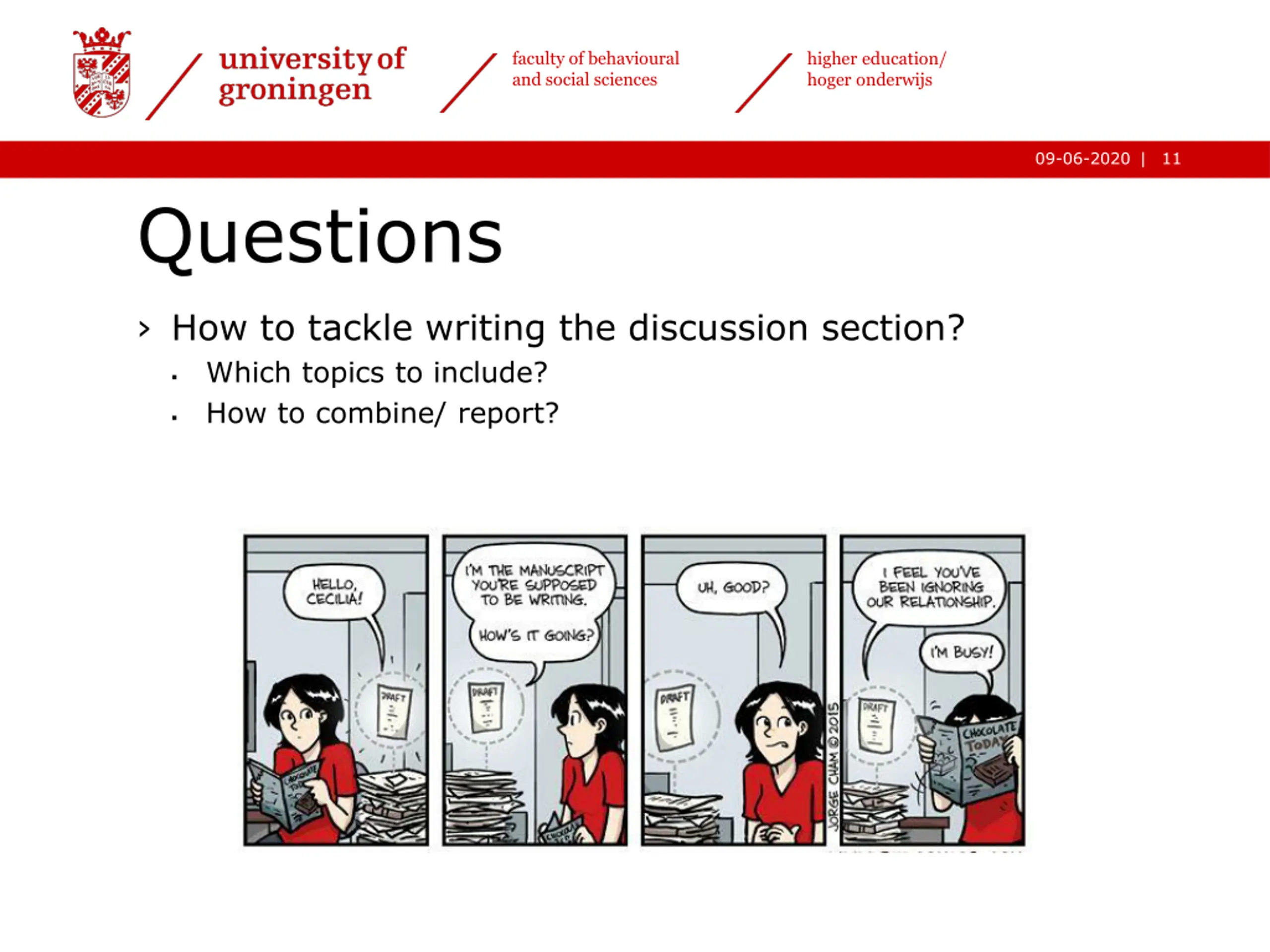 faculty of behavioural and social sciences higher education/ hoger onderwijs 09-06-2020 | 11 Questions How to tackle writing the discussion section? Which topics to include? How to combine/ report?