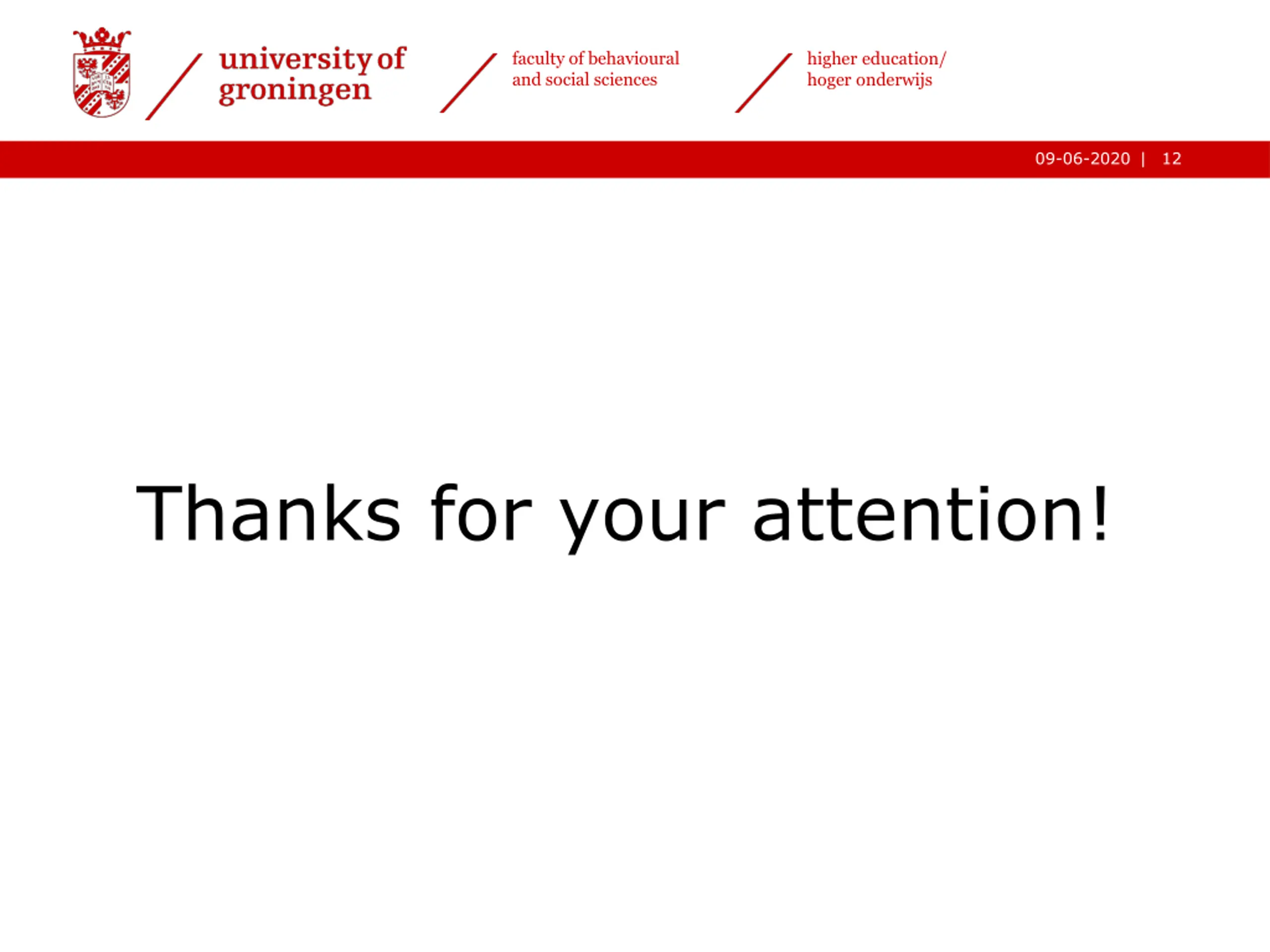faculty of behavioural and social sciences higher education/ hoger onderwijs 09-06-2020 | 12 Thanks for your attention!