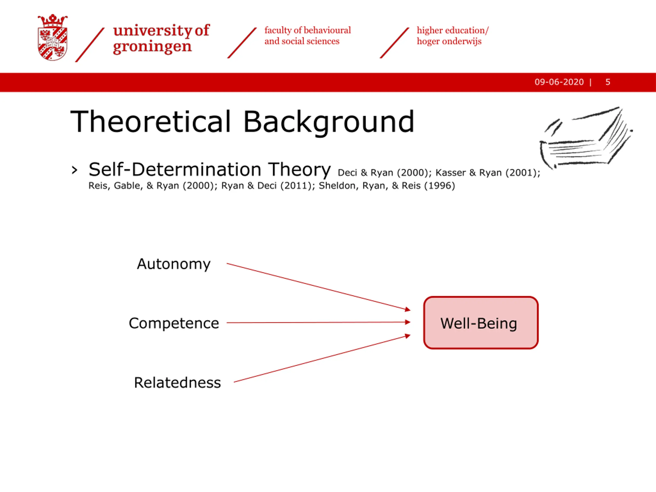 faculty of behavioural and social sciences higher education/ hoger onderwijs 09-06-2020 | 5 Theoretical Background Self-Determination Theory Deci & Ryan (2000); Kasser & Ryan (2001); Reis, Gable, & Ryan (2000); Ryan & Deci (2011); Sheldon, Ryan, & Reis (1996) Autonomy Competence Well-Being Relatedness