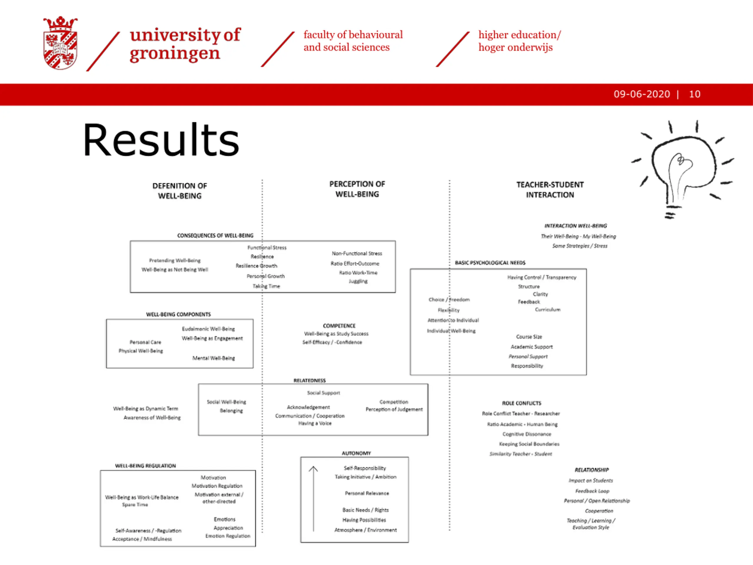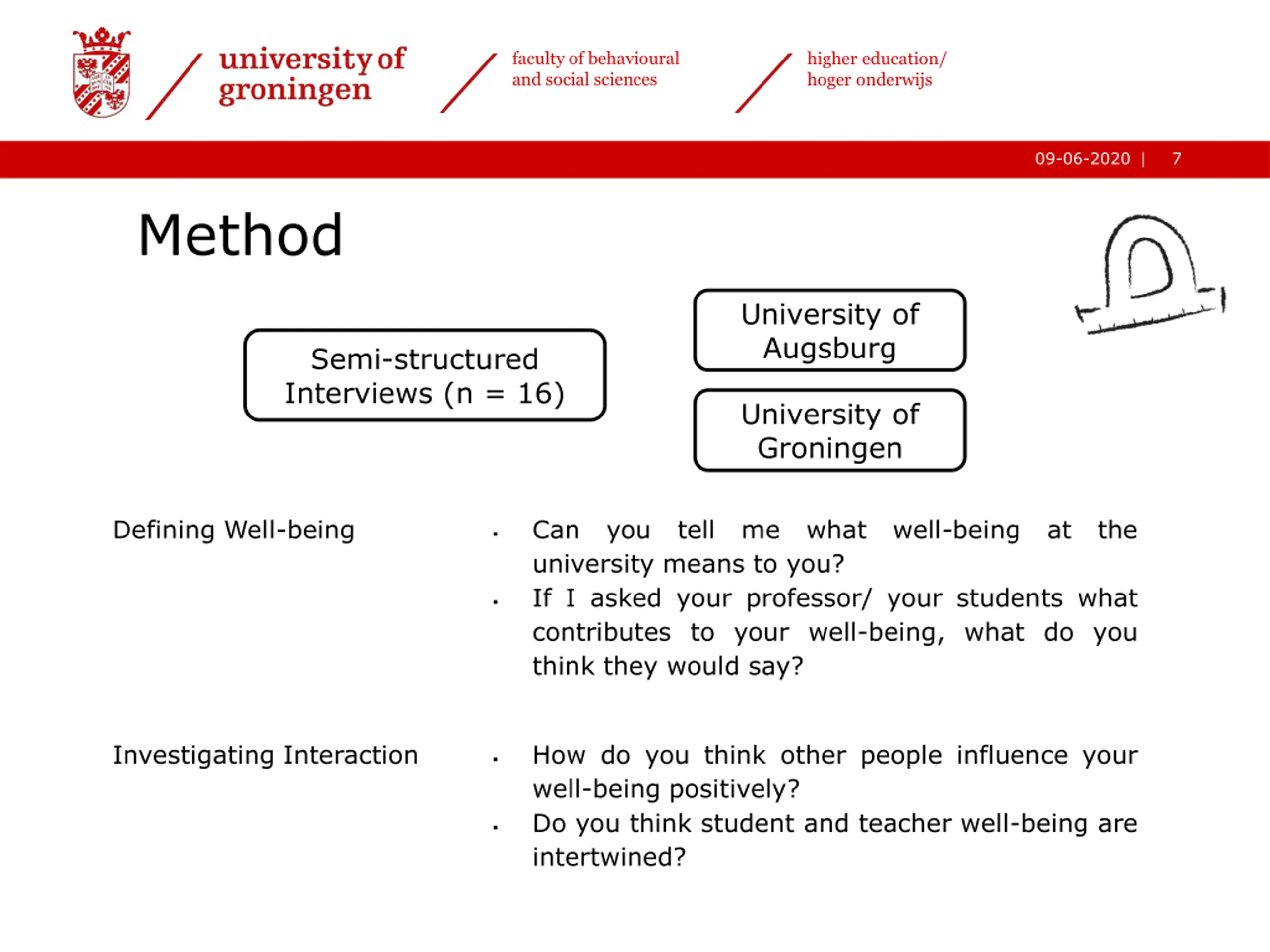 faculty of behavioural and social sciences higher education/ hoger onderwijs 09-06-2020 | 7 Method University of Augsburg Semi-structured Interviews (n = 16) University of Groningen Defining Well-being Can university means to you? If I asked your professor/ your students what contributes to your well-being, what do you think they would say? you tell me what well-being at the Investigating Interaction How do you think other people influence your well-being positively? Do you think student and teacher well-being are intertwined?