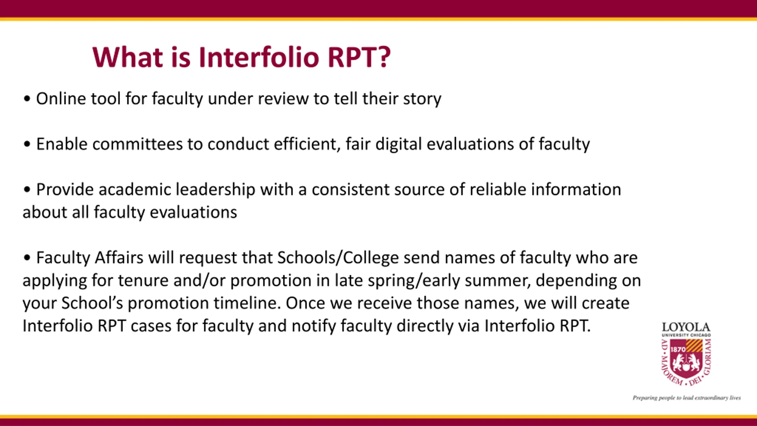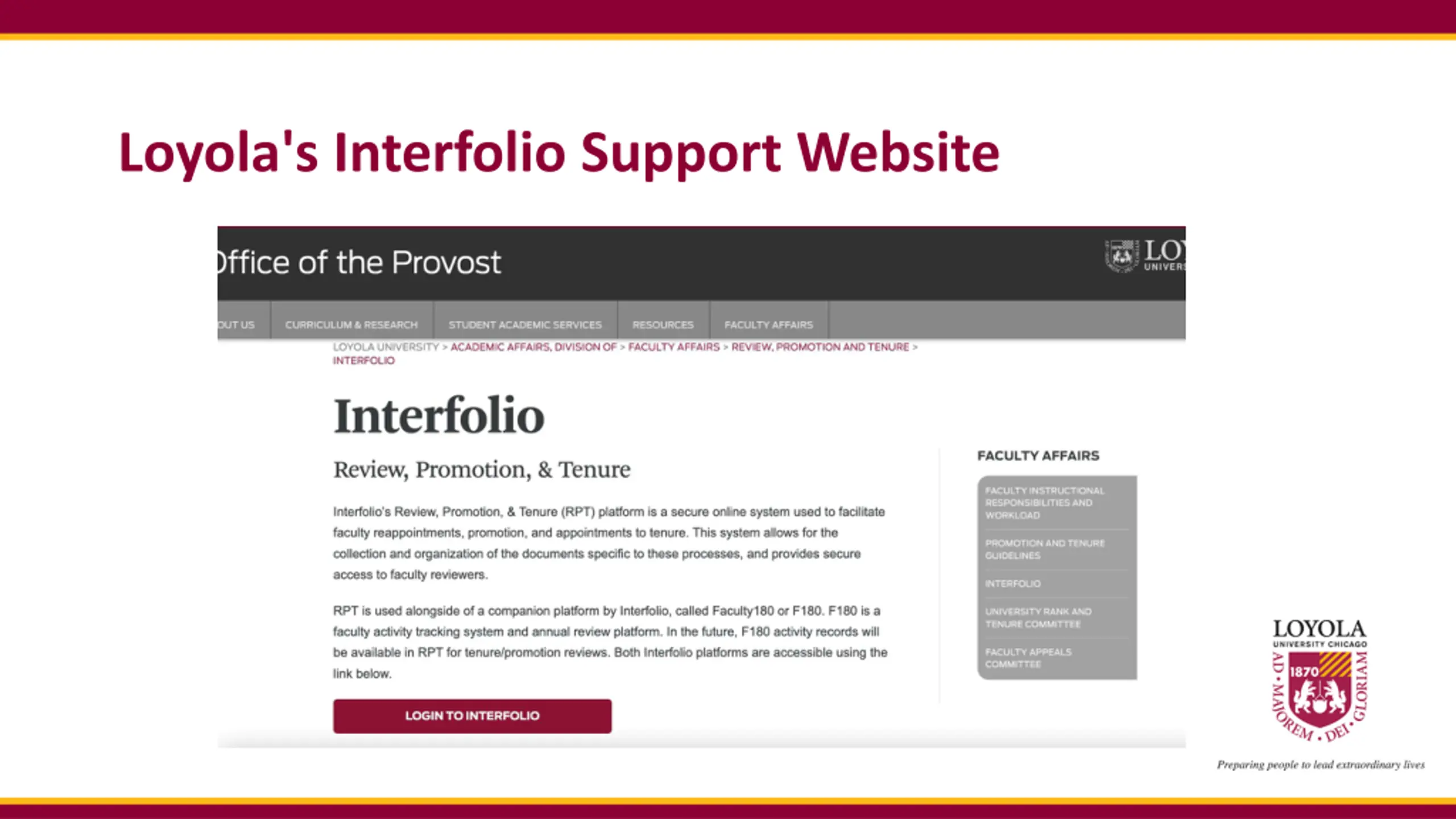 Faculty Interfolio Information Session Loyola University Chicago June 12, 2024