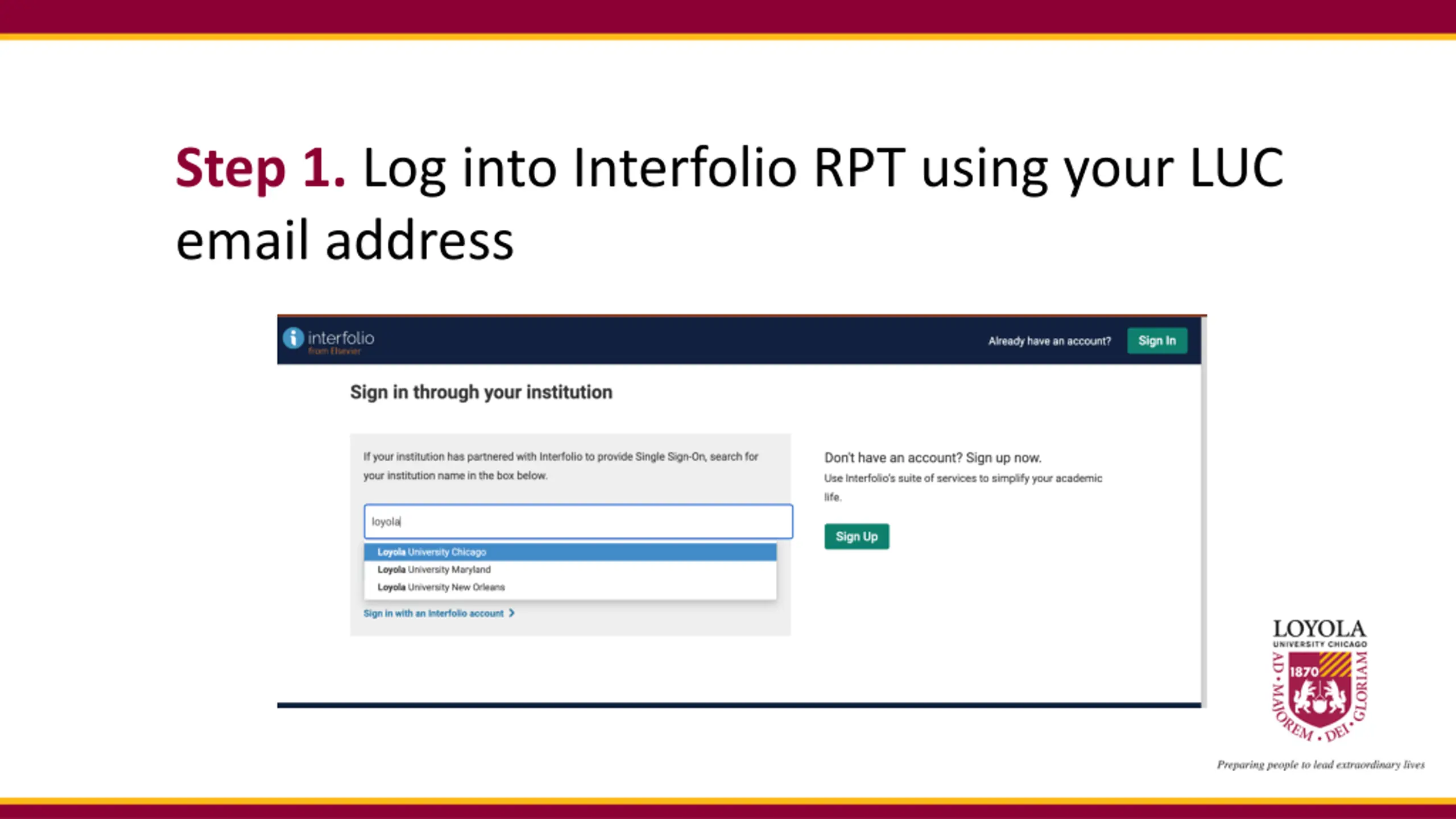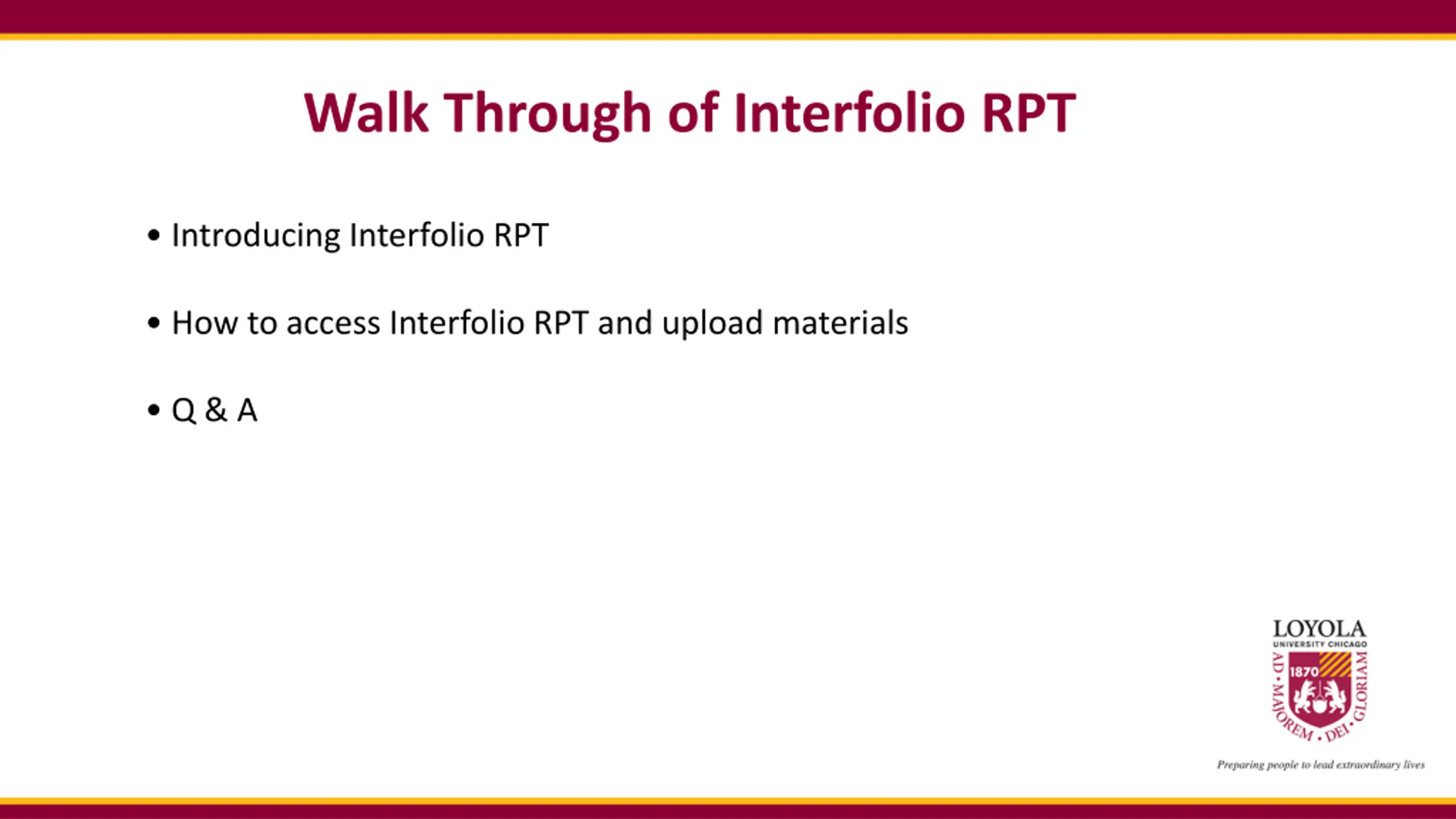 Walk Through of Interfolio RPT Introducing Interfolio RPT How to access Interfolio RPT and upload materials Q & A