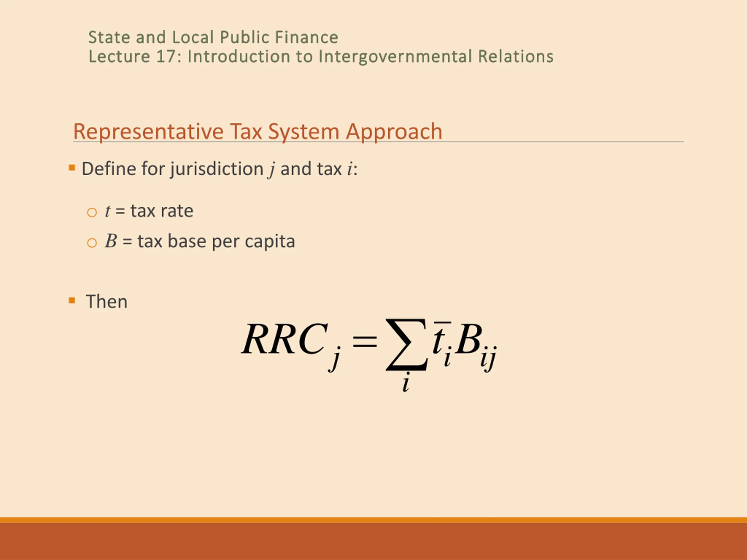State and Local Public Finance State and Local Public Finance Lecture 17: Introduction to Intergovernmental Relations Lecture 17: Introduction to Intergovernmental Relations Representative Tax System Approach Define for jurisdictionjand tax i: o t = tax rate o B = tax base per capita Then = RRC i ij t B j i