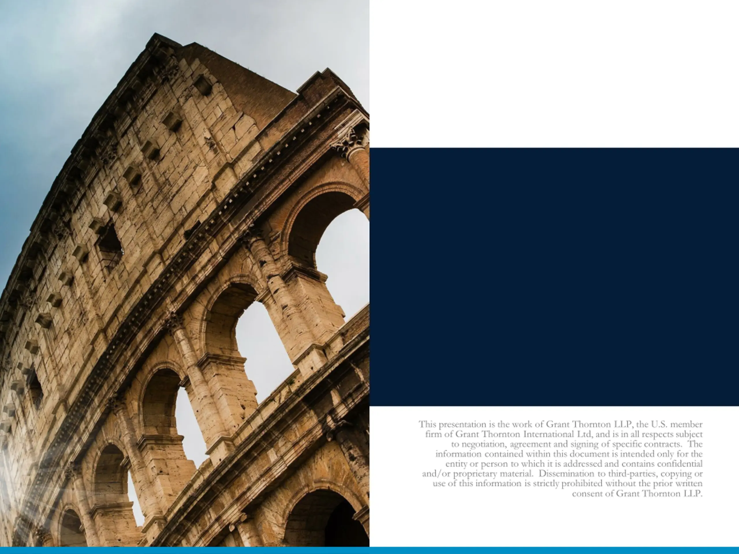This presentation is the work of Grant Thornton LLP, the U.S. member firm of Grant Thornton International Ltd, and is in all respects subject to negotiation, agreement and signing of specific contracts. The information contained within this document is intended only for the entity or person to which it is addressed and contains confidential and/or proprietary material. Dissemination to third-parties, copying or use of this information is strictly prohibited without the prior written consent of Grant Thornton LLP.