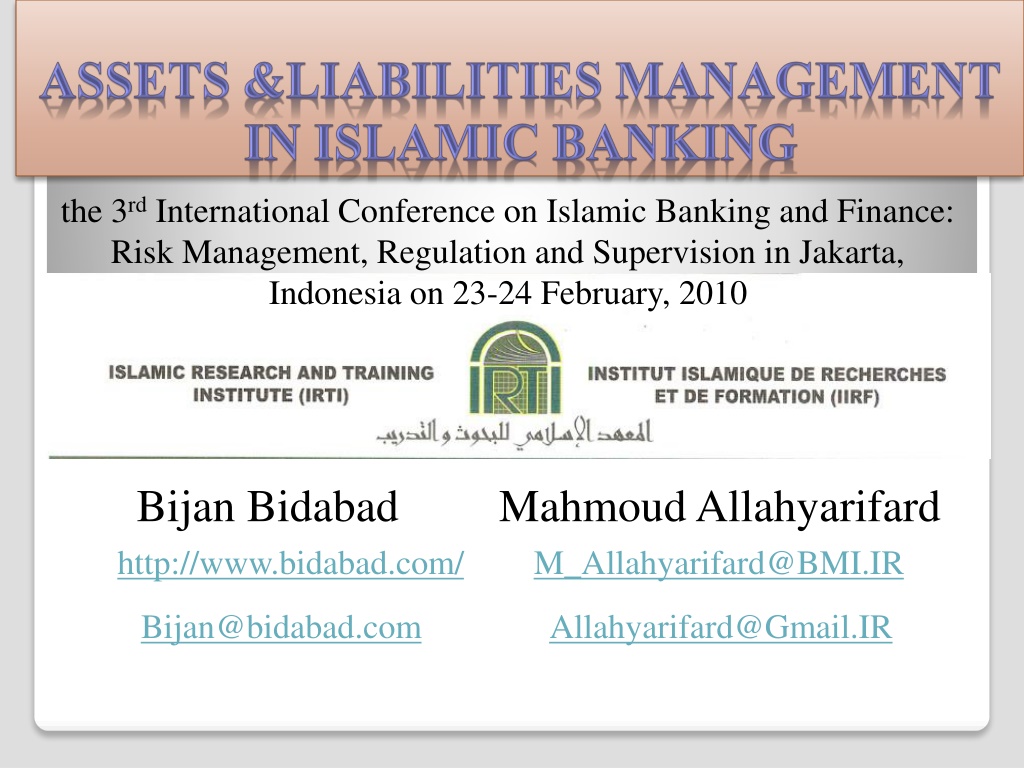 the 3rdInternational Conference on Islamic Banking and Finance: Risk Management, Regulation and Supervision in Jakarta, Indonesia on 23-24 February, 2010 Bijan Bidabad http://www.bidabad.com/ MahmoudAllahyarifard M_Allahyarifard@BMI.IR Bijan@bidabad.com Allahyarifard@Gmail.IR