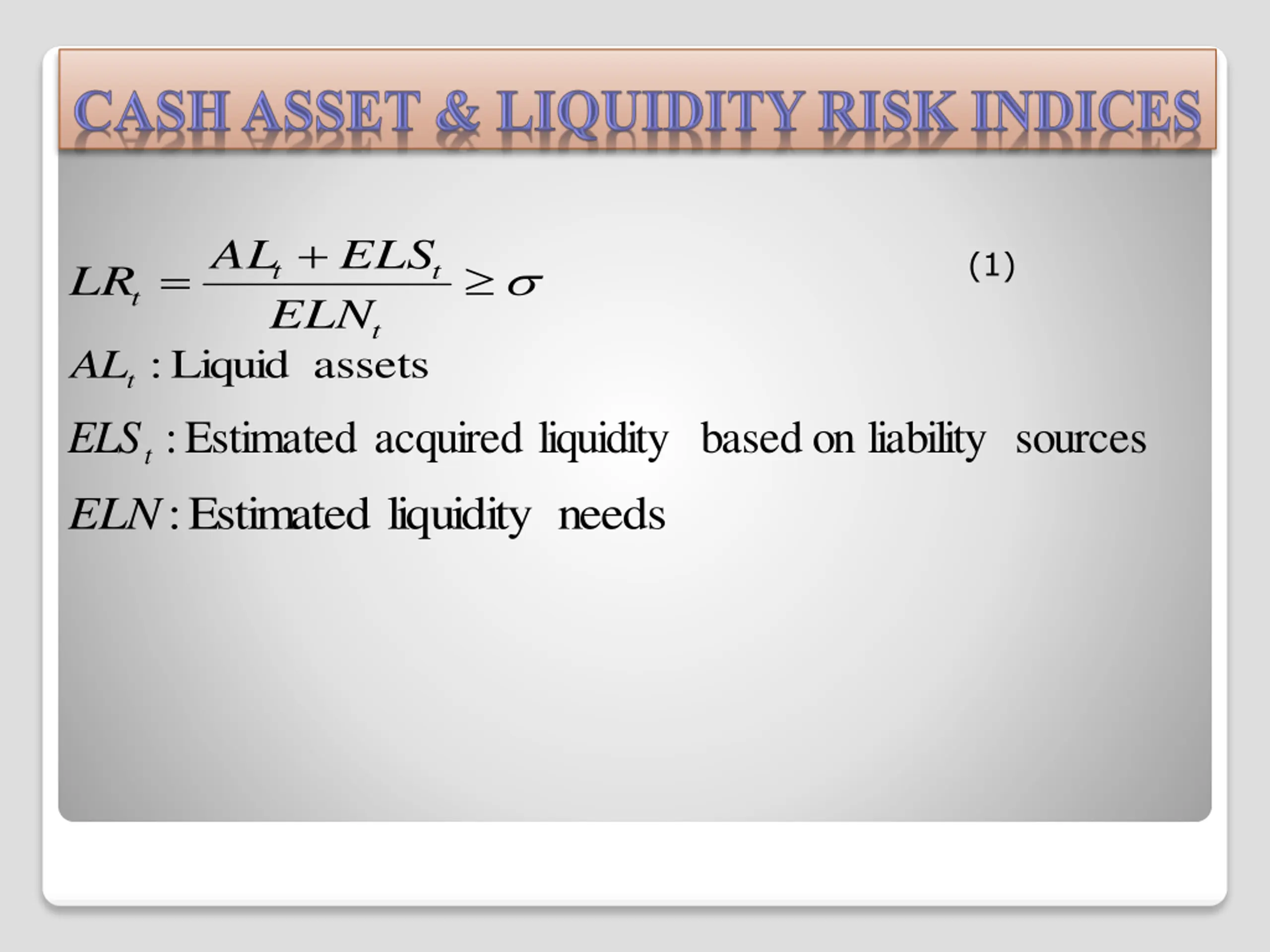 + AL ELS (1) = t ELN assets t LR t t : Liquid AL t : : Estimated Estimated acquired liquidity liquidity needs based on liability sources ELS ELN t