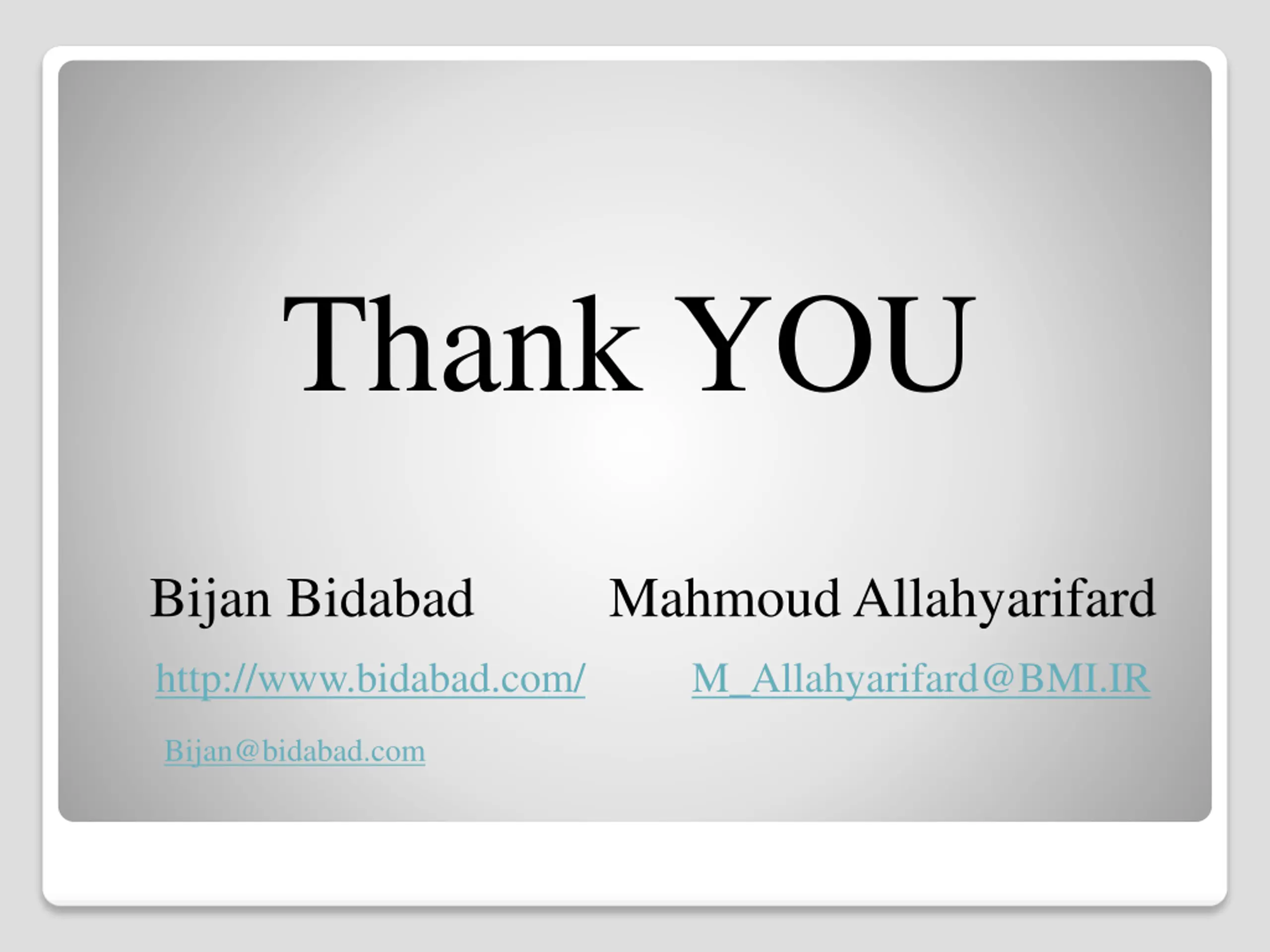 Thank YOU Bijan Bidabad MahmoudAllahyarifard http://www.bidabad.com/ M_Allahyarifard@BMI.IR Bijan@bidabad.com