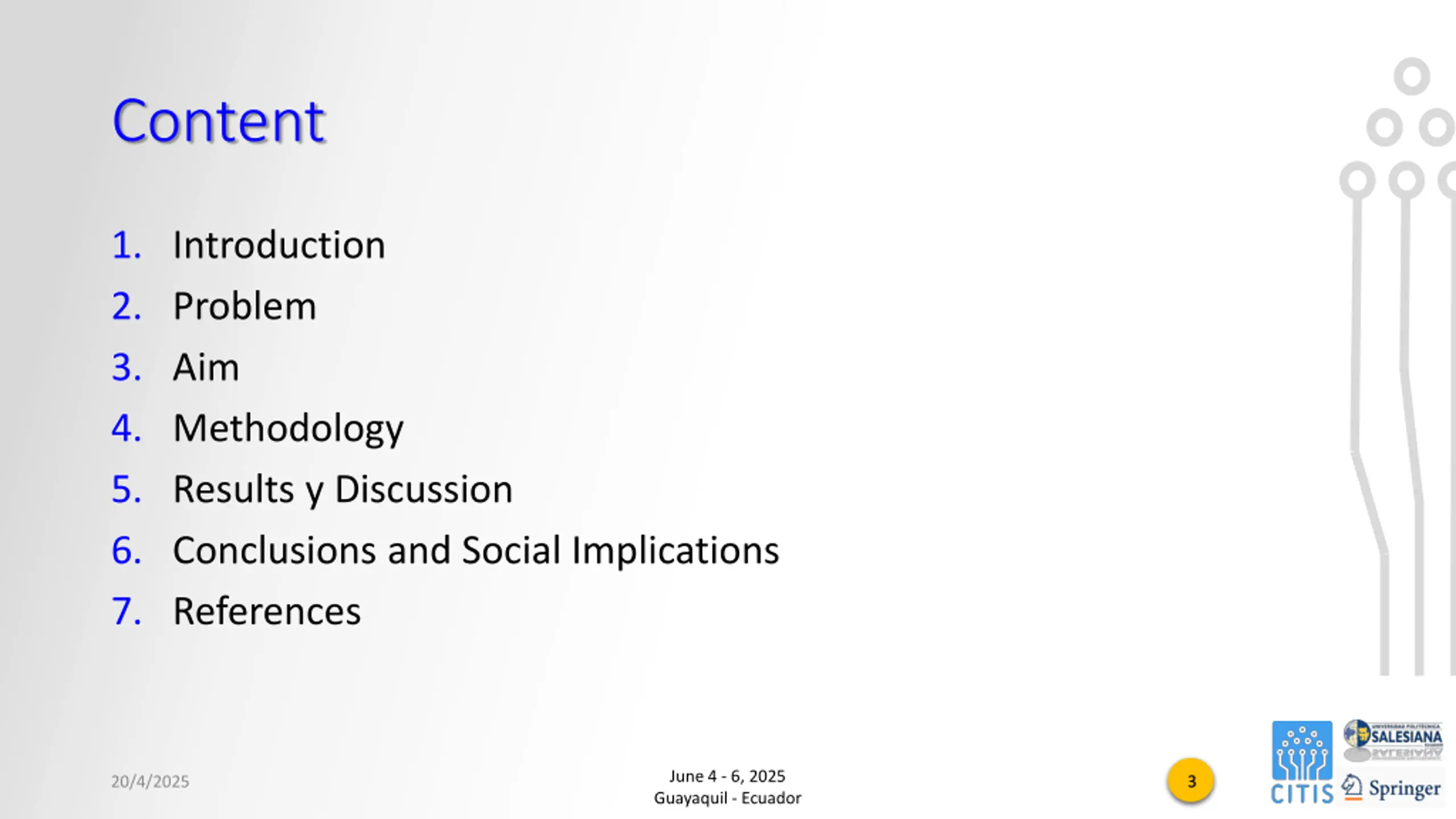 Content 1. Introduction 2. Problem 3. Aim 4. Methodology 5. Results y Discussion 6. Conclusions and Social Implications 7. References June 4 - 6, 2025 Guayaquil - Ecuador 20/4/2025 3