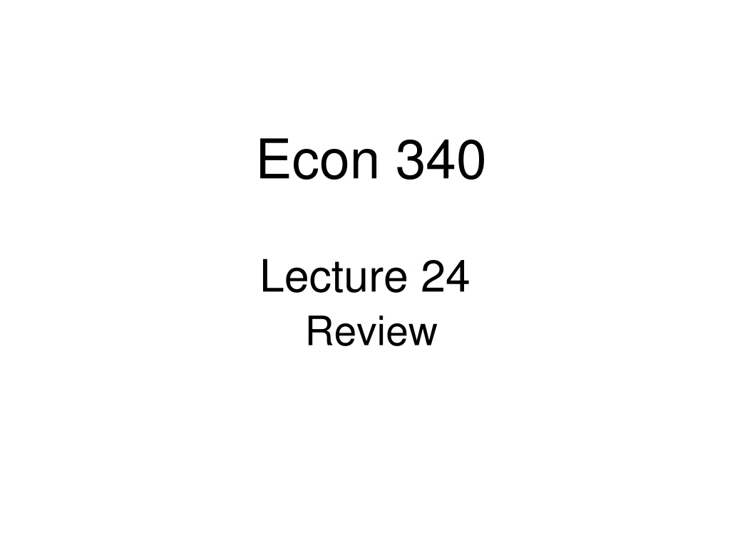 Lecture 24 Outline For each lecture: Outline Major questions Lists of Terms Acronyms Clicker questions Especially on graphs Econ 340, Deardorff, Lecture 24: Review 2