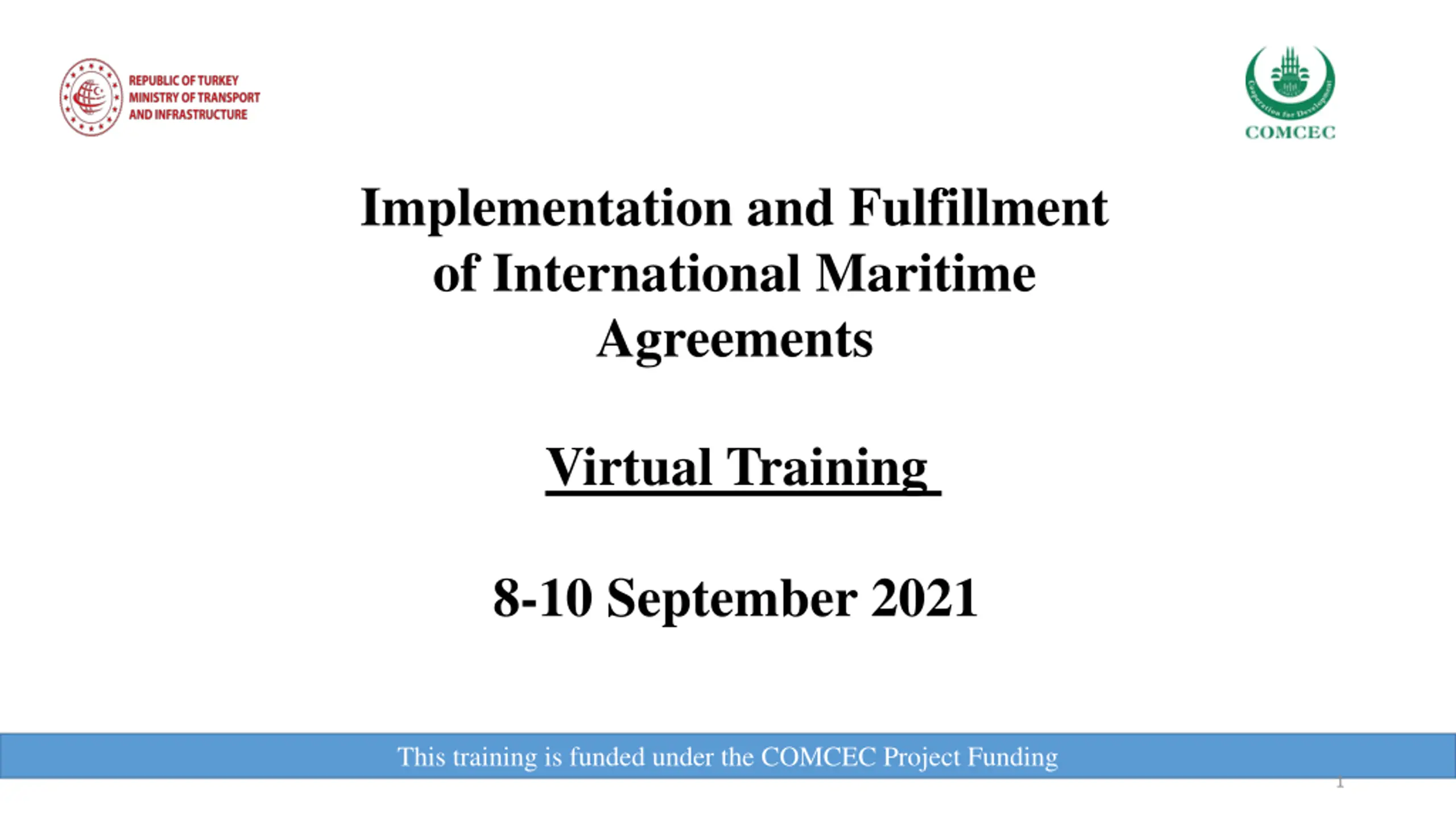 Implementation and Fulfillment of International Maritime Agreements Virtual Training 8-10 September 2021 This training is funded under the COMCEC Project Funding 1