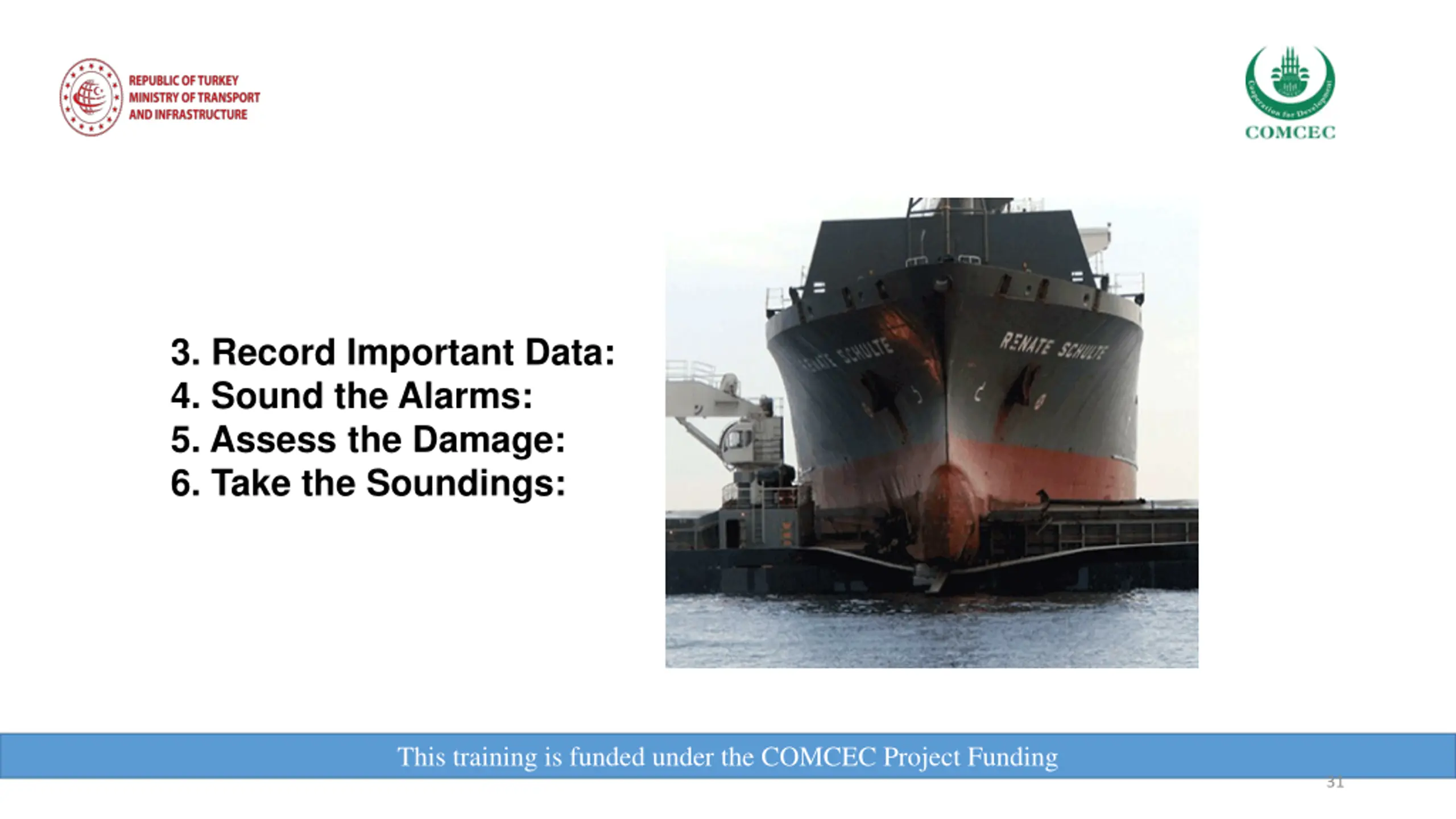 3. Record Important Data: 4. Sound the Alarms: 5. Assess the Damage: 6. Take the Soundings: This training is funded under the COMCEC Project Funding 31