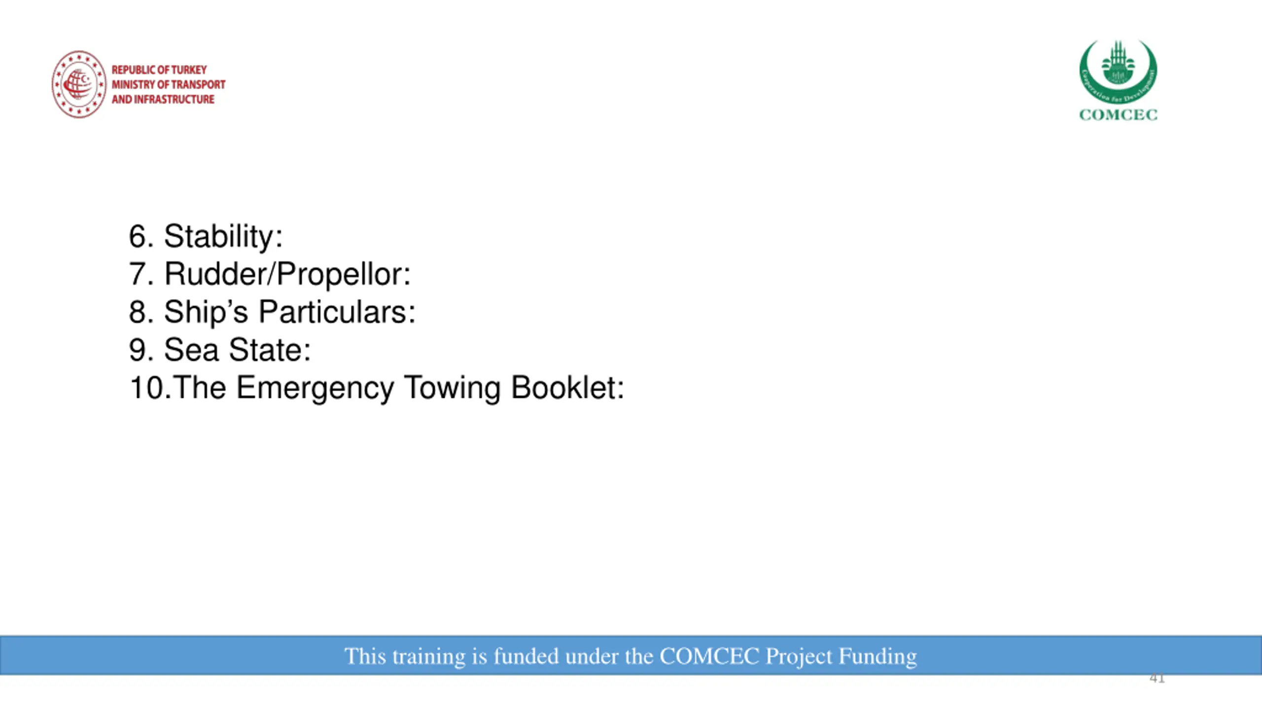 6. Stability: 7. Rudder/Propellor: 8. Ship s Particulars: 9. Sea State: 10.The Emergency Towing Booklet: This training is funded under the COMCEC Project Funding 41