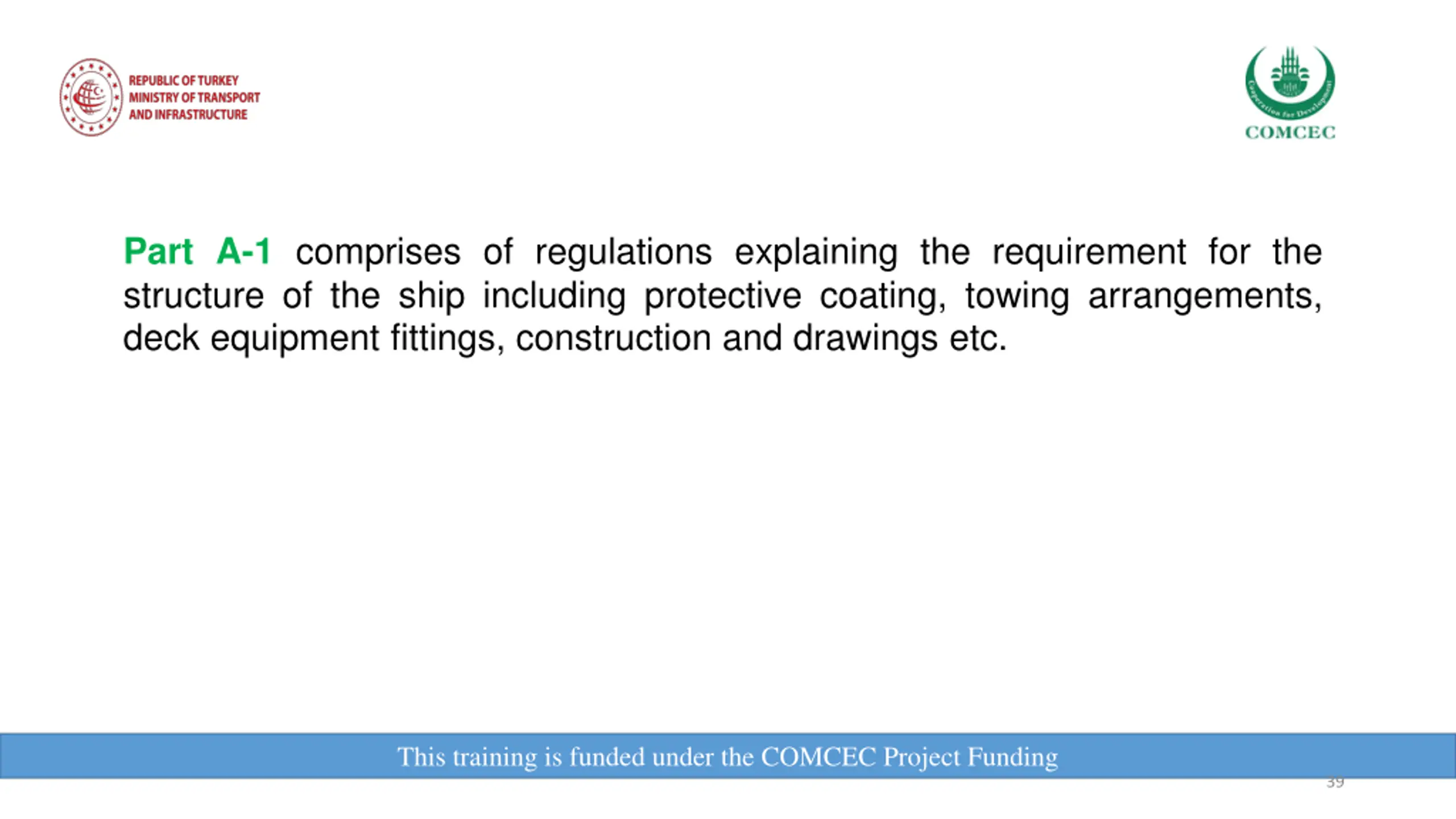 Part A-1 comprises of regulations explaining the requirement for the structure of the ship including protective coating, towing arrangements, deck equipment fittings, construction and drawings etc. This training is funded under the COMCEC Project Funding 39