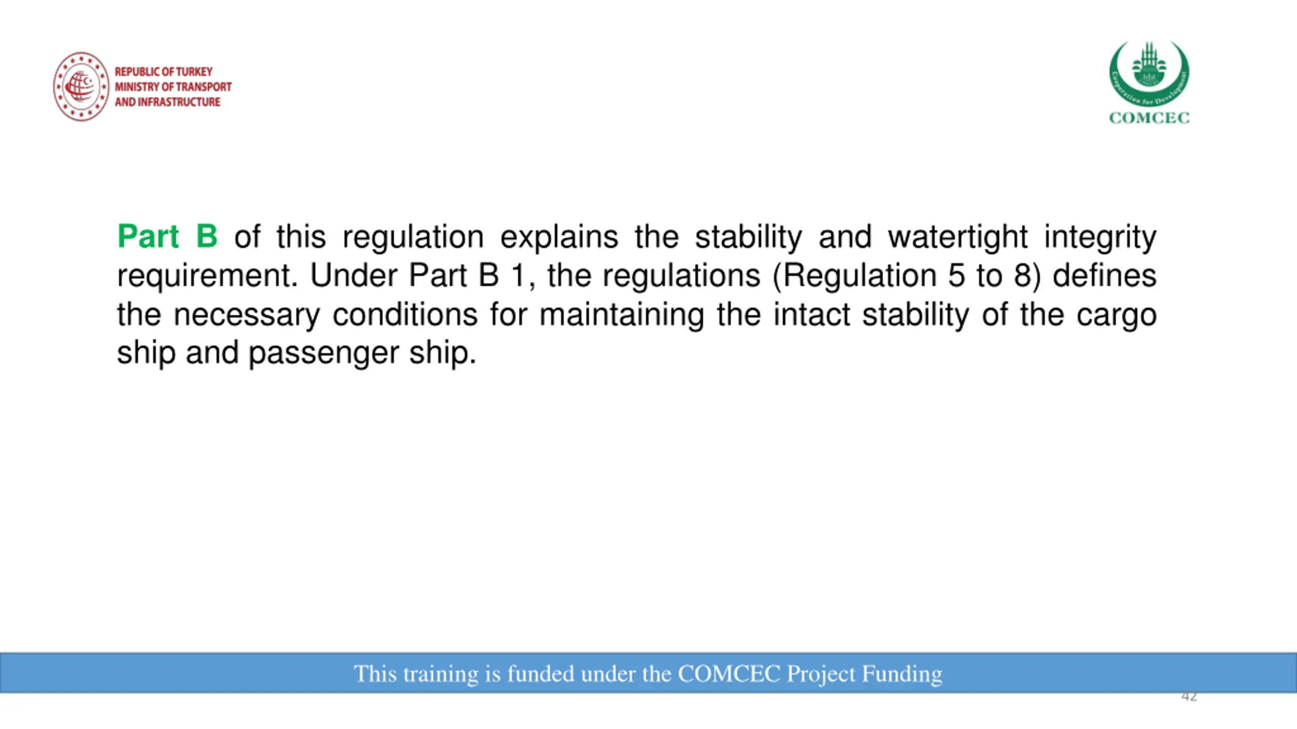 Part B of this regulation explains the stability and watertight integrity requirement. Under Part B 1, the regulations (Regulation 5 to 8) defines the necessary conditions for maintaining the intact stability of the cargo ship and passenger ship. This training is funded under the COMCEC Project Funding 42