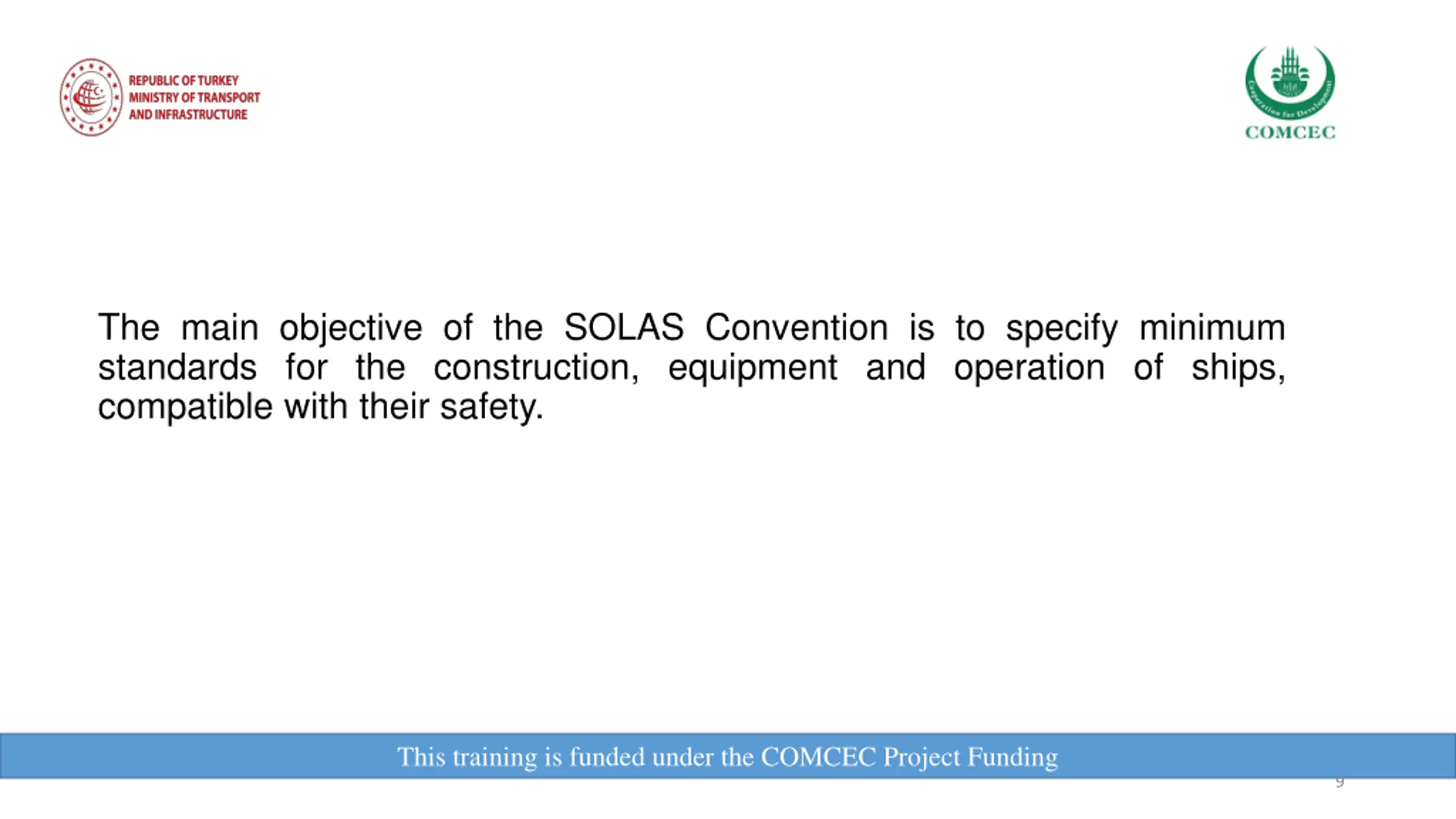 The main objective of the SOLAS Convention is to specify minimum standards for the construction, equipment and operation of ships, compatible with their safety. This training is funded under the COMCEC Project Funding 9