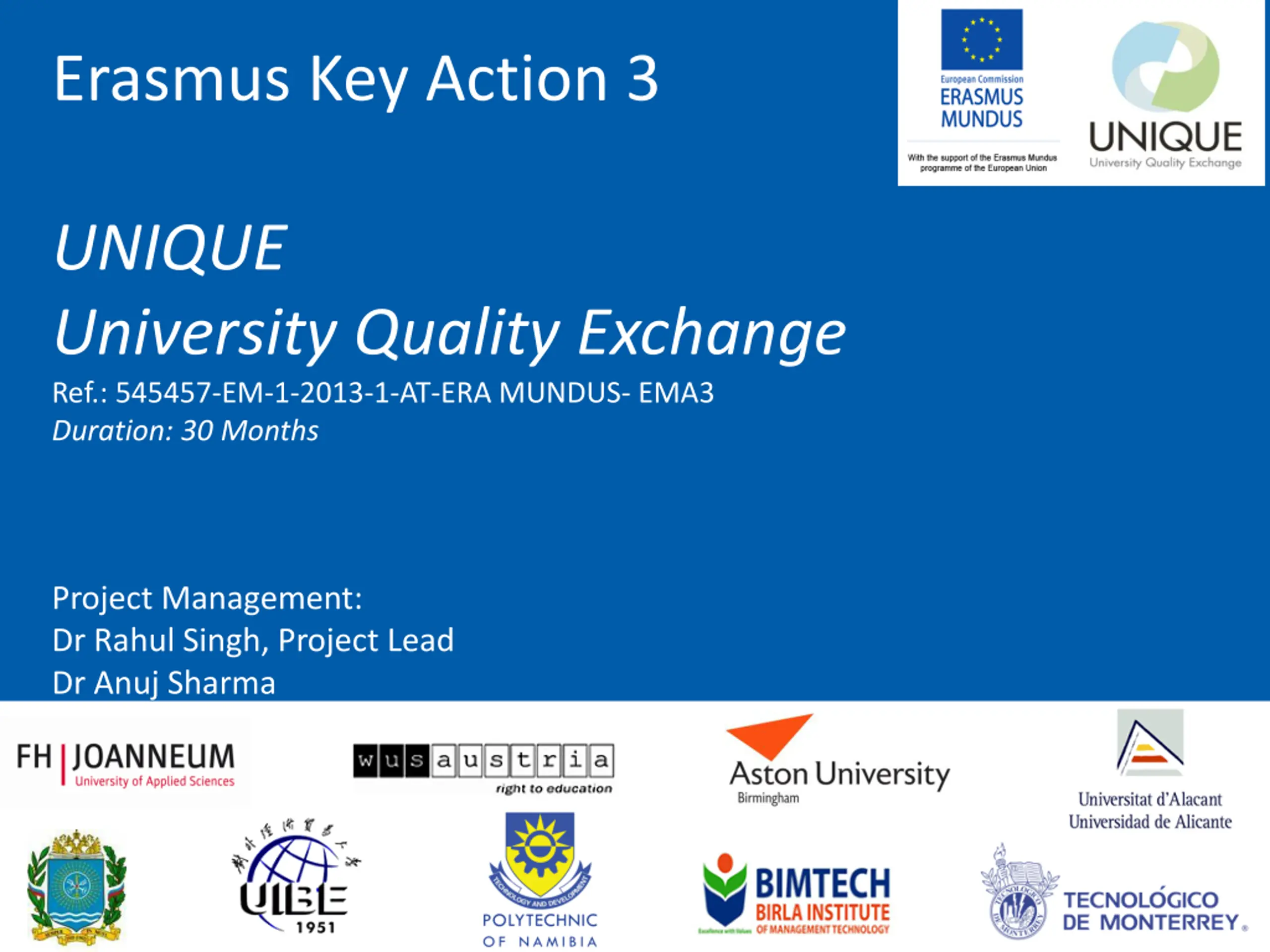 www.fh-joanneum.at MANAGEMENT Erasmus Key Action 3 UNIQUE University Quality Exchange Ref.: 545457-EM-1-2013-1-AT-ERA MUNDUS- EMA3 Duration: 30 Months Project Management: Dr Rahul Singh, Project Lead Dr Anuj Sharma