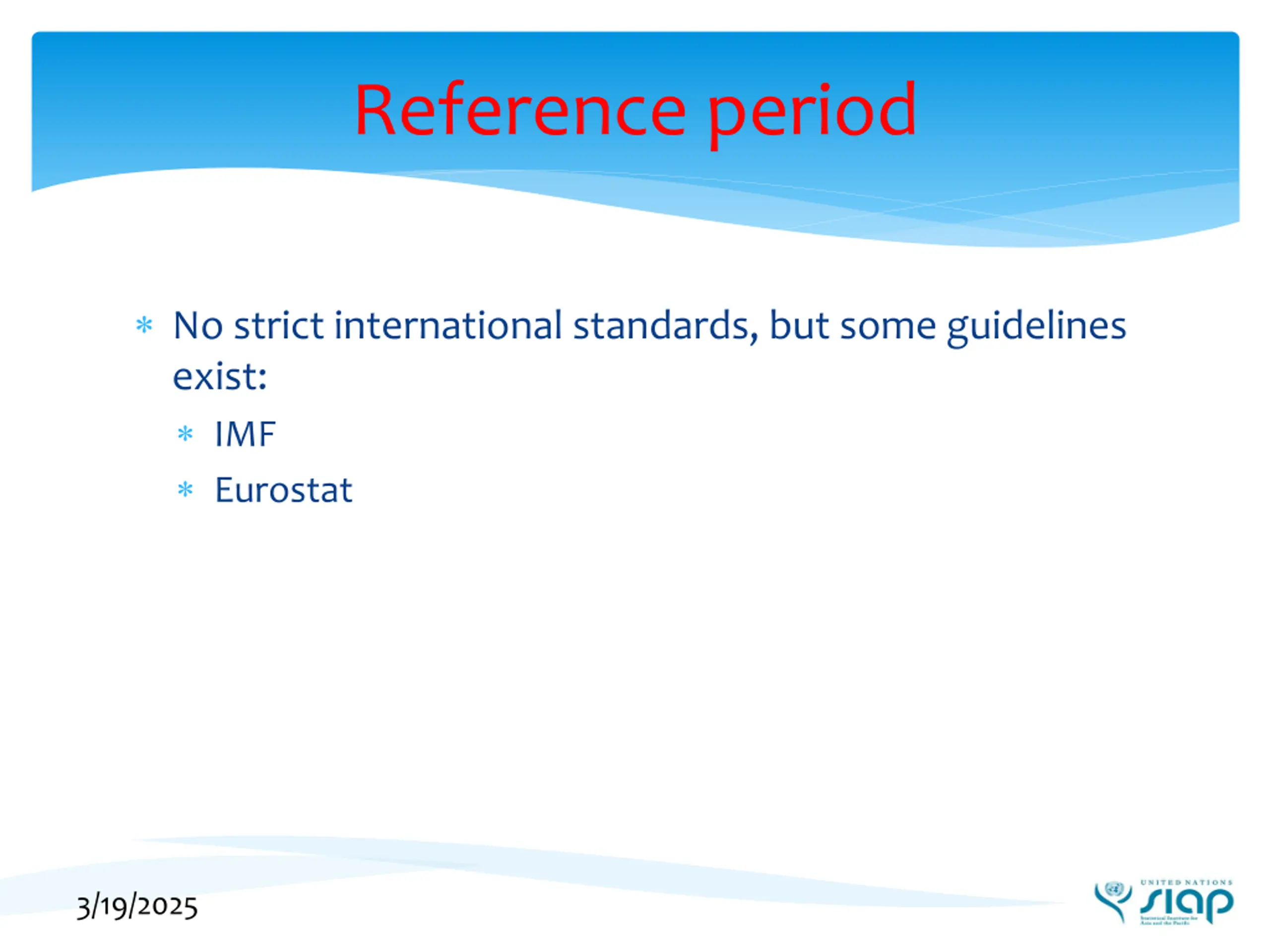 Reference period No strict international standards, but some guidelines exist: IMF Eurostat 3/19/2025