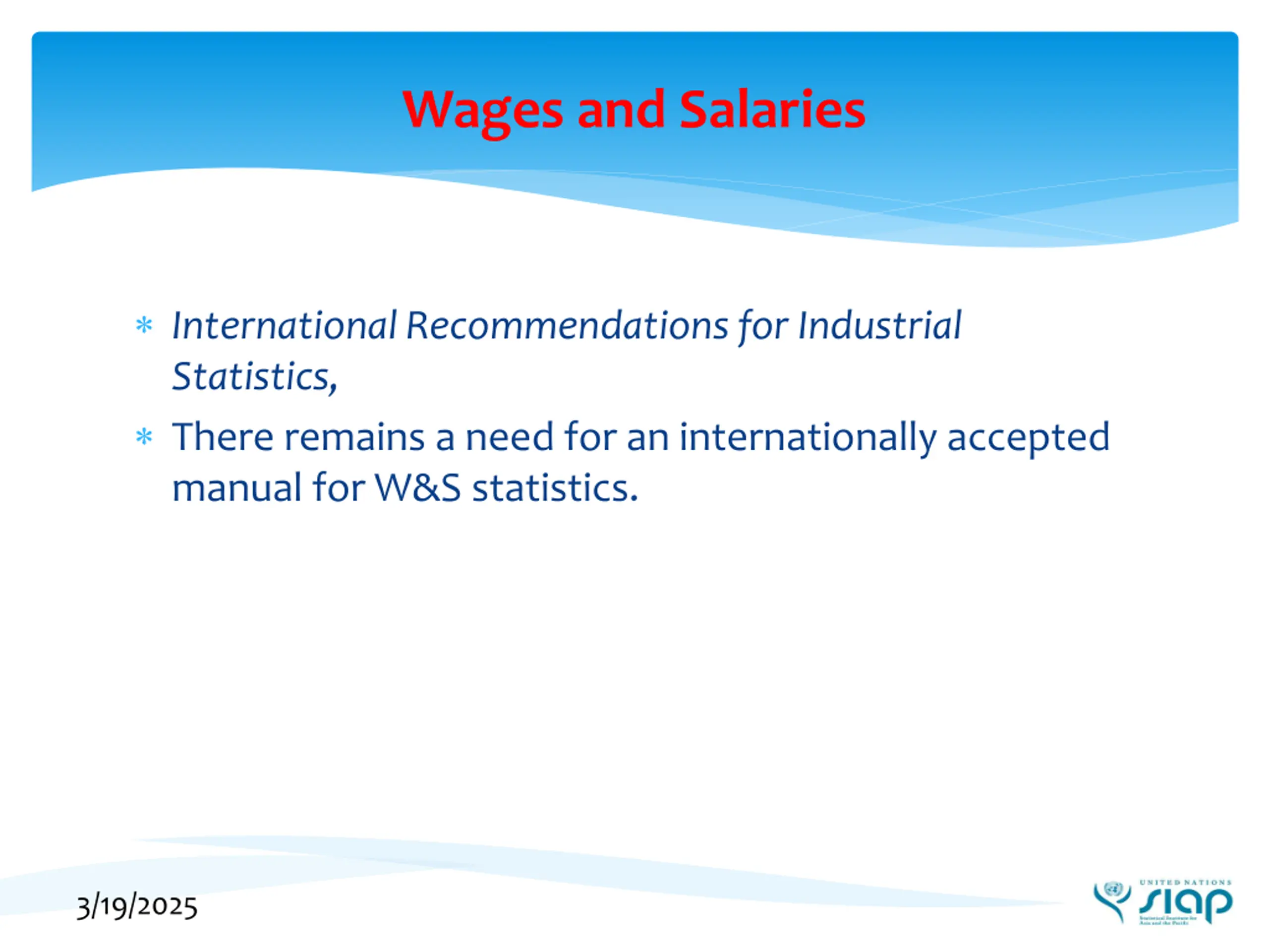 Wages and Salaries International Recommendations for Industrial Statistics, There remains a need for an internationally accepted manual for W&S statistics. 3/19/2025