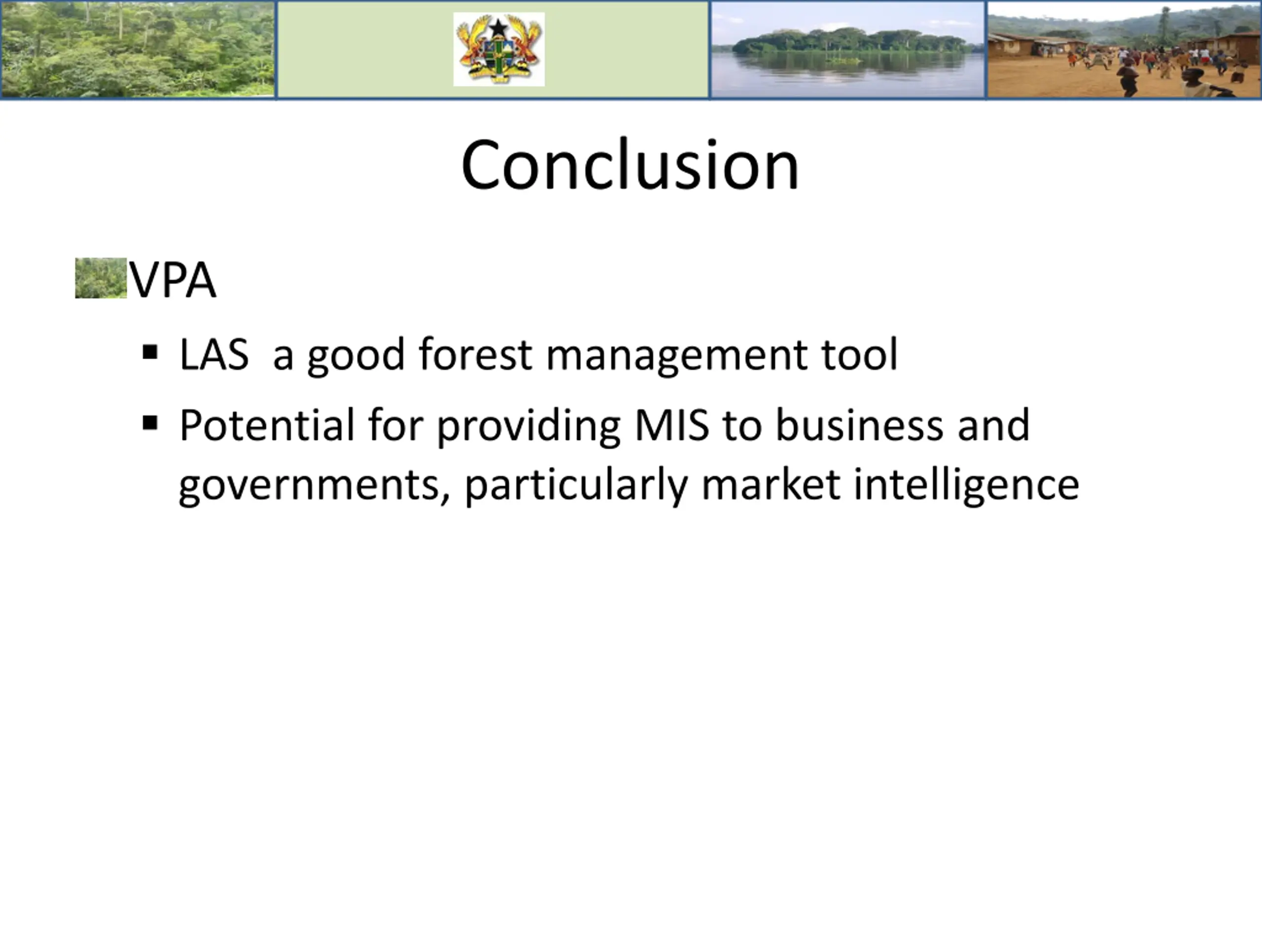 Conclusion VPA LAS a good forest management tool Potential for providing MIS to business and governments, particularly market intelligence