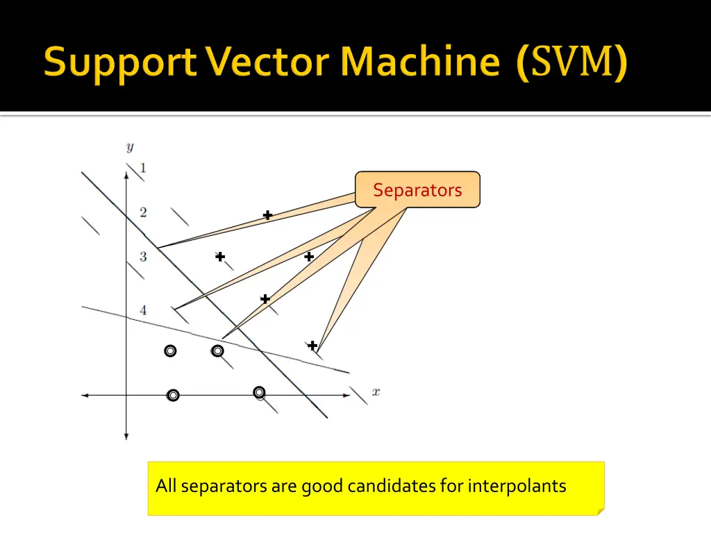 Data is not linearly separable The candidate interpolant is not an interpolant y + + x