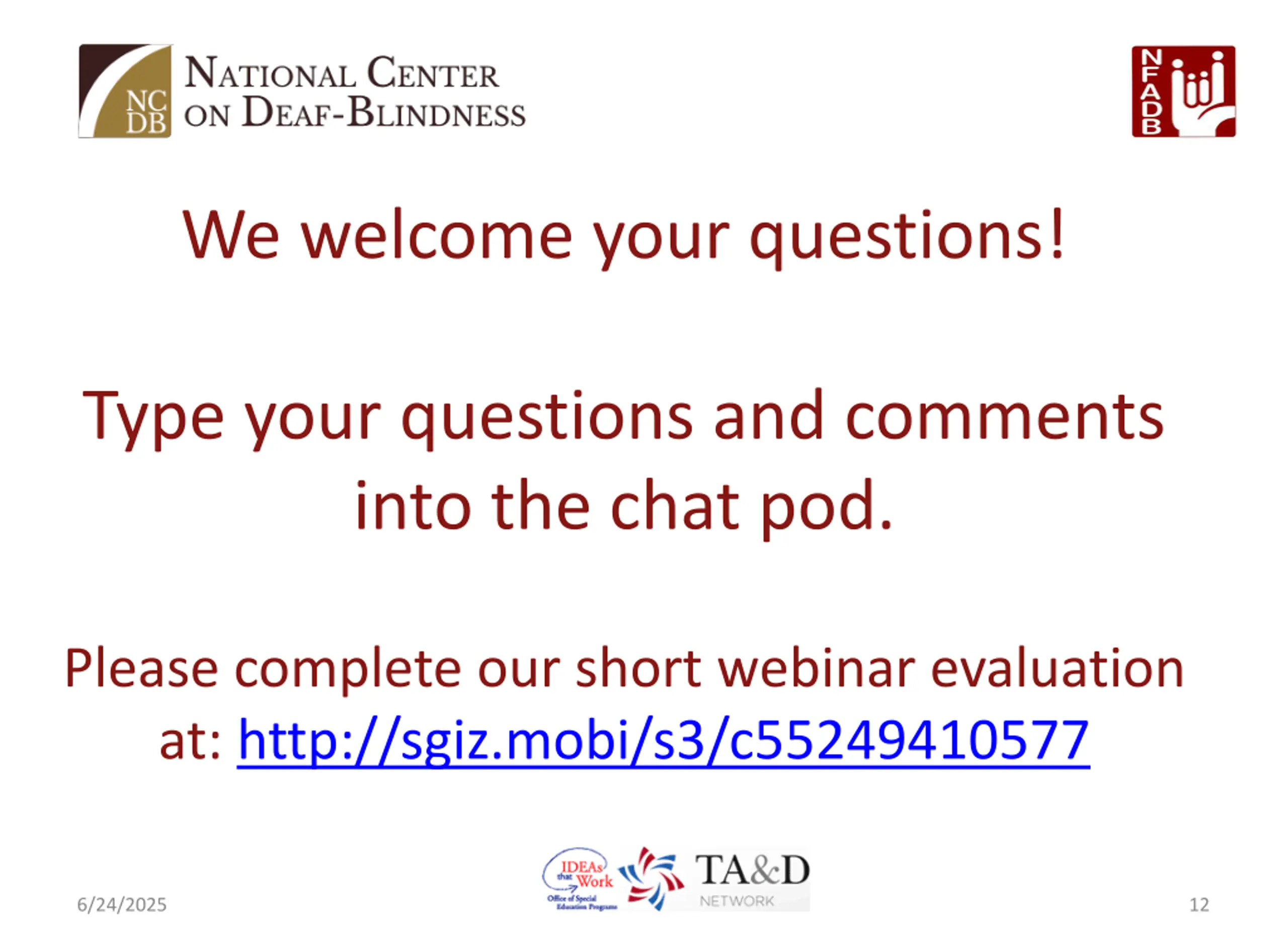 We welcome your questions! Type your questions and comments into the chat pod. Please complete our short webinar evaluation at: http://sgiz.mobi/s3/c55249410577 6/24/2025 12