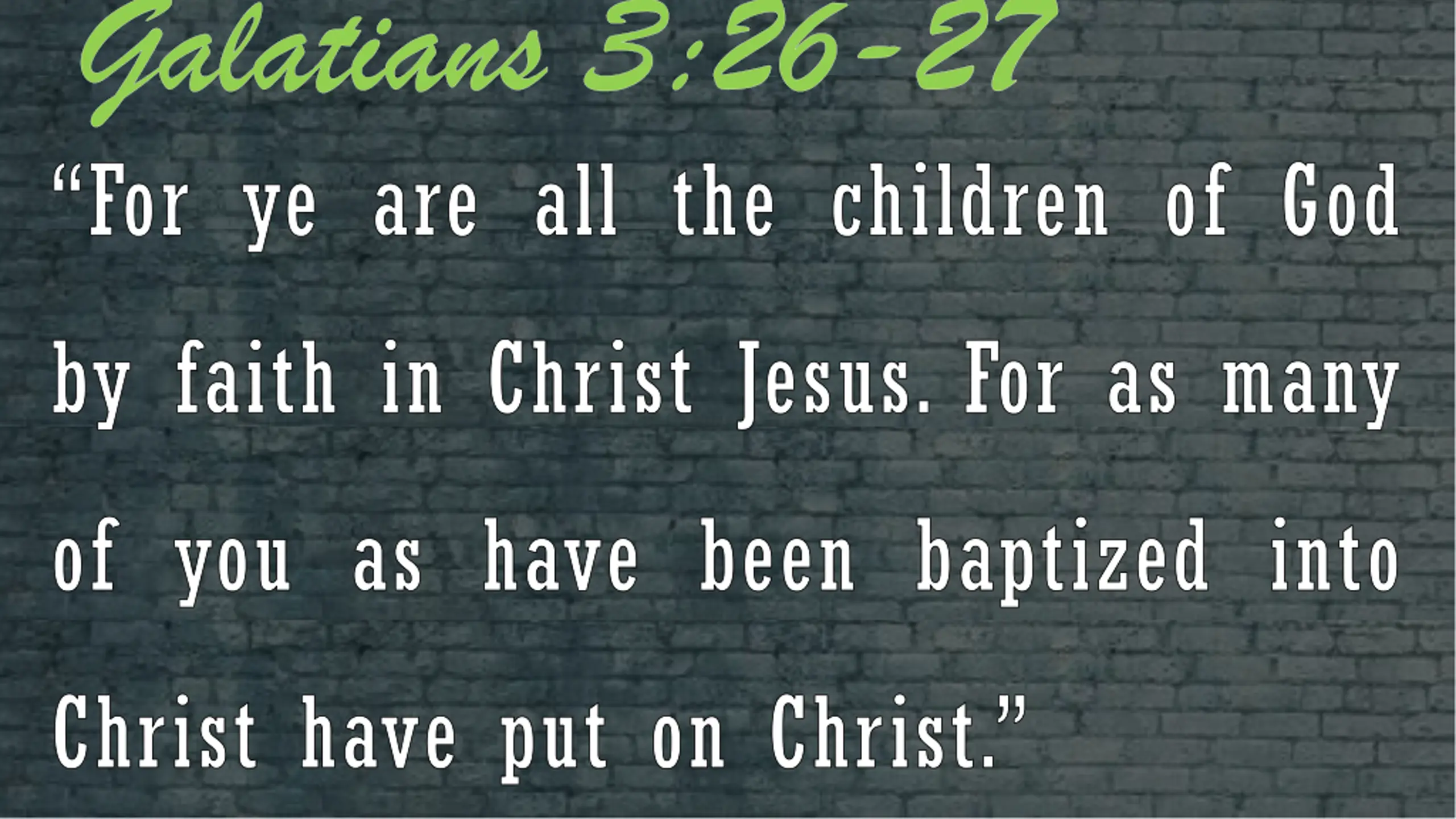 Galatians 3:26-27 For ye are all the children of God by faith in Christ Jesus. For as many of you as have been baptized into Christ have put on Christ.