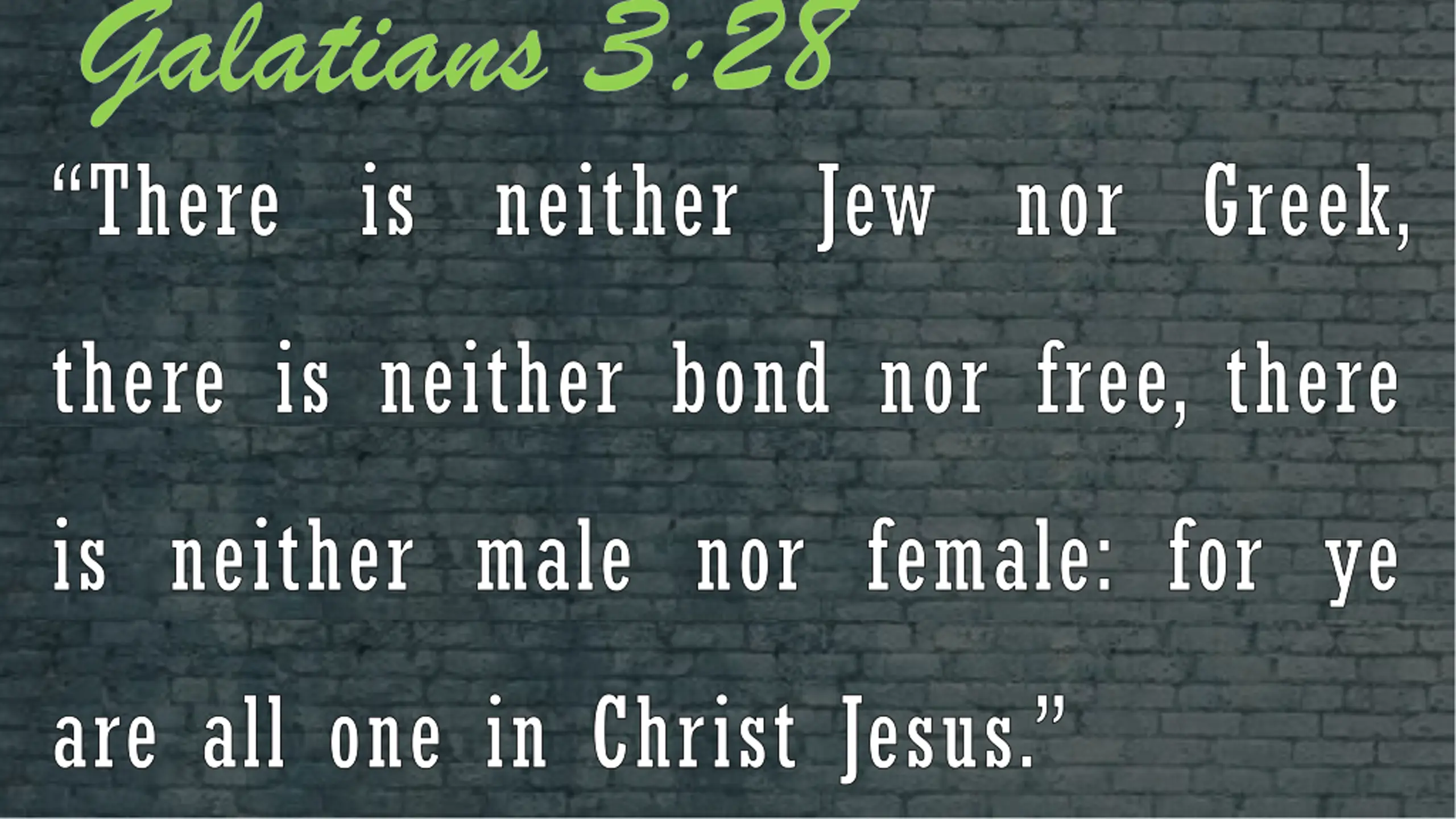 Galatians 3:28 There is neither Jew nor Greek, there is neither bond nor free, there is neither male nor female: for ye are all one in Christ Jesus.