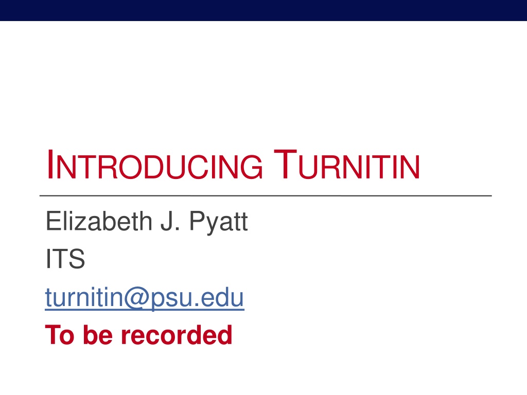 INTRODUCING TURNITIN Elizabeth J. Pyatt ITS turnitin@psu.edu To be recorded