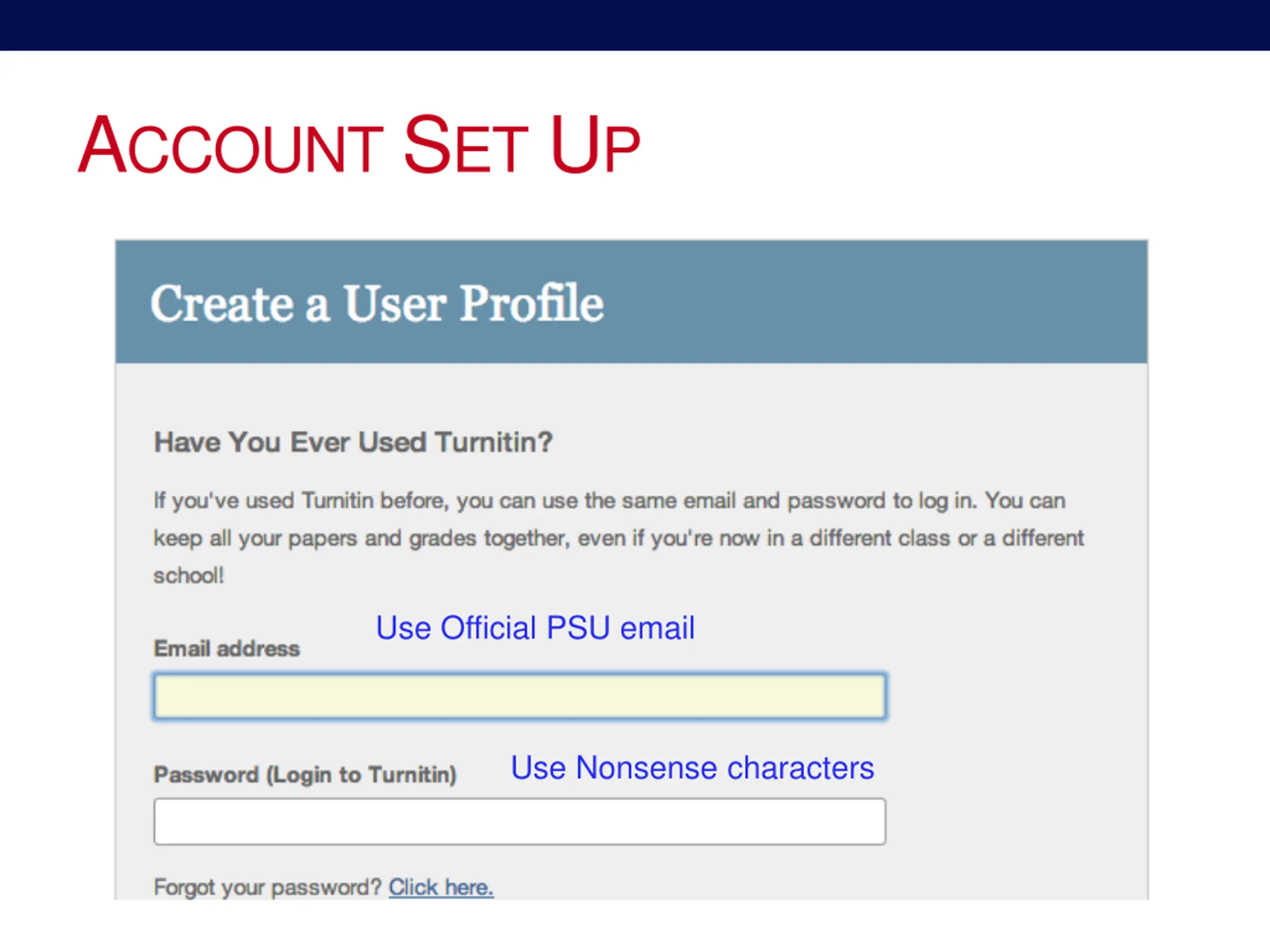 ACCOUNT SET UP Use Official PSU email Use Nonsense characters