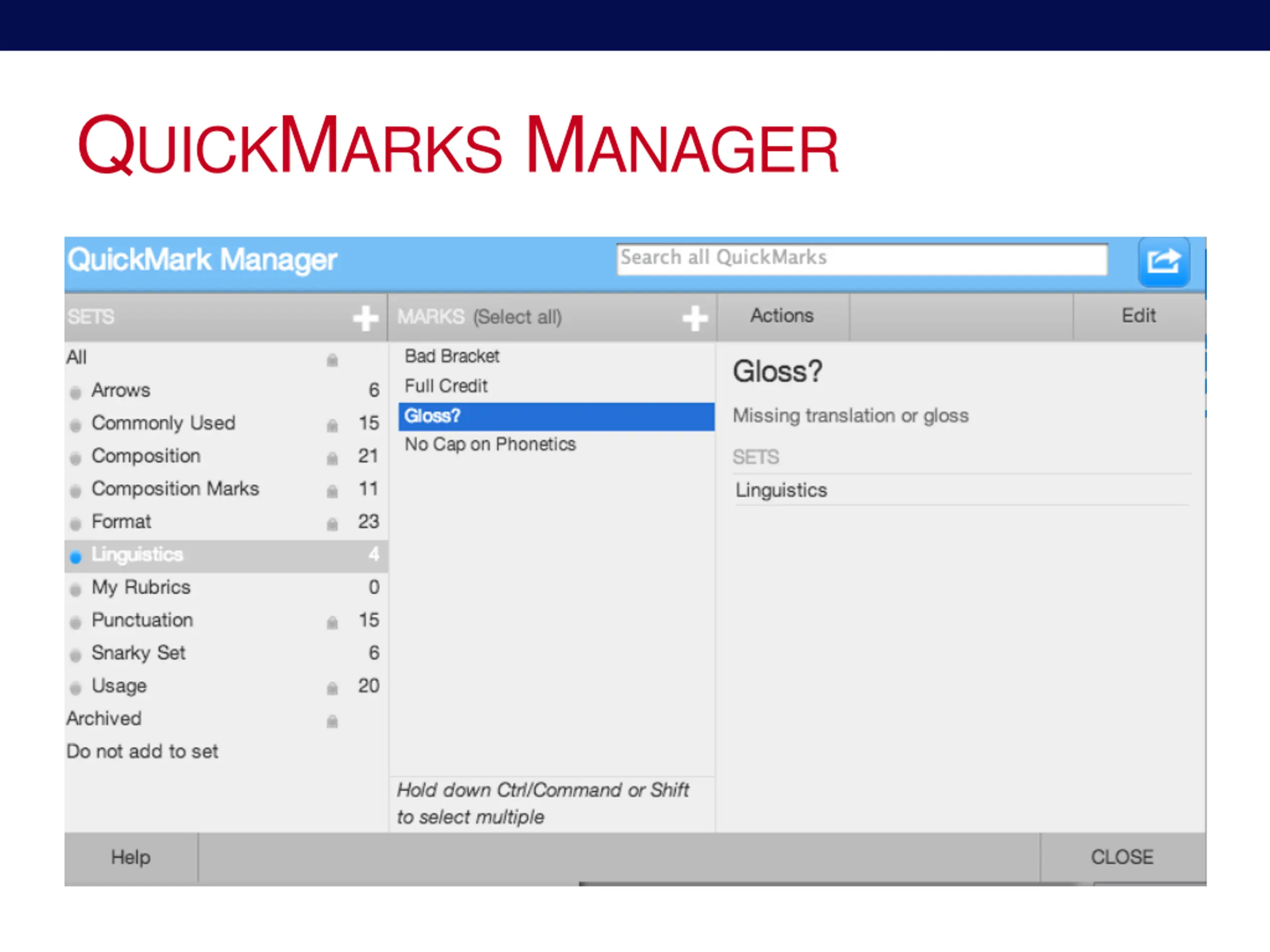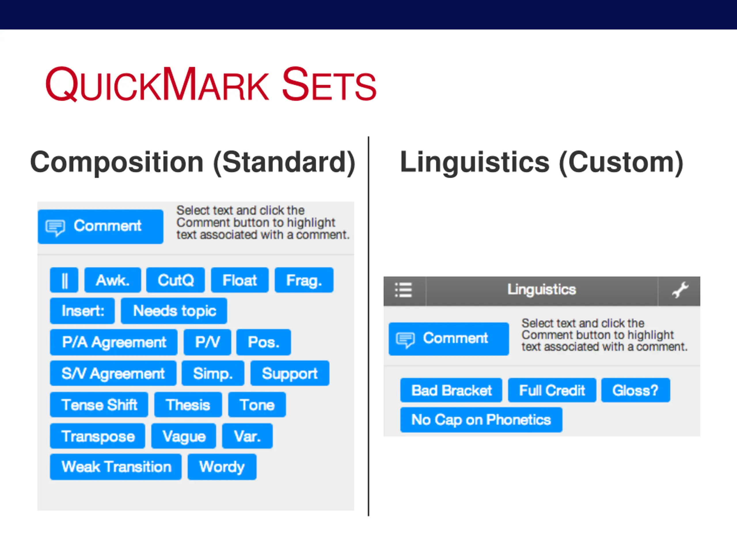 QUICKMARK SETS Composition (Standard) Linguistics (Custom)