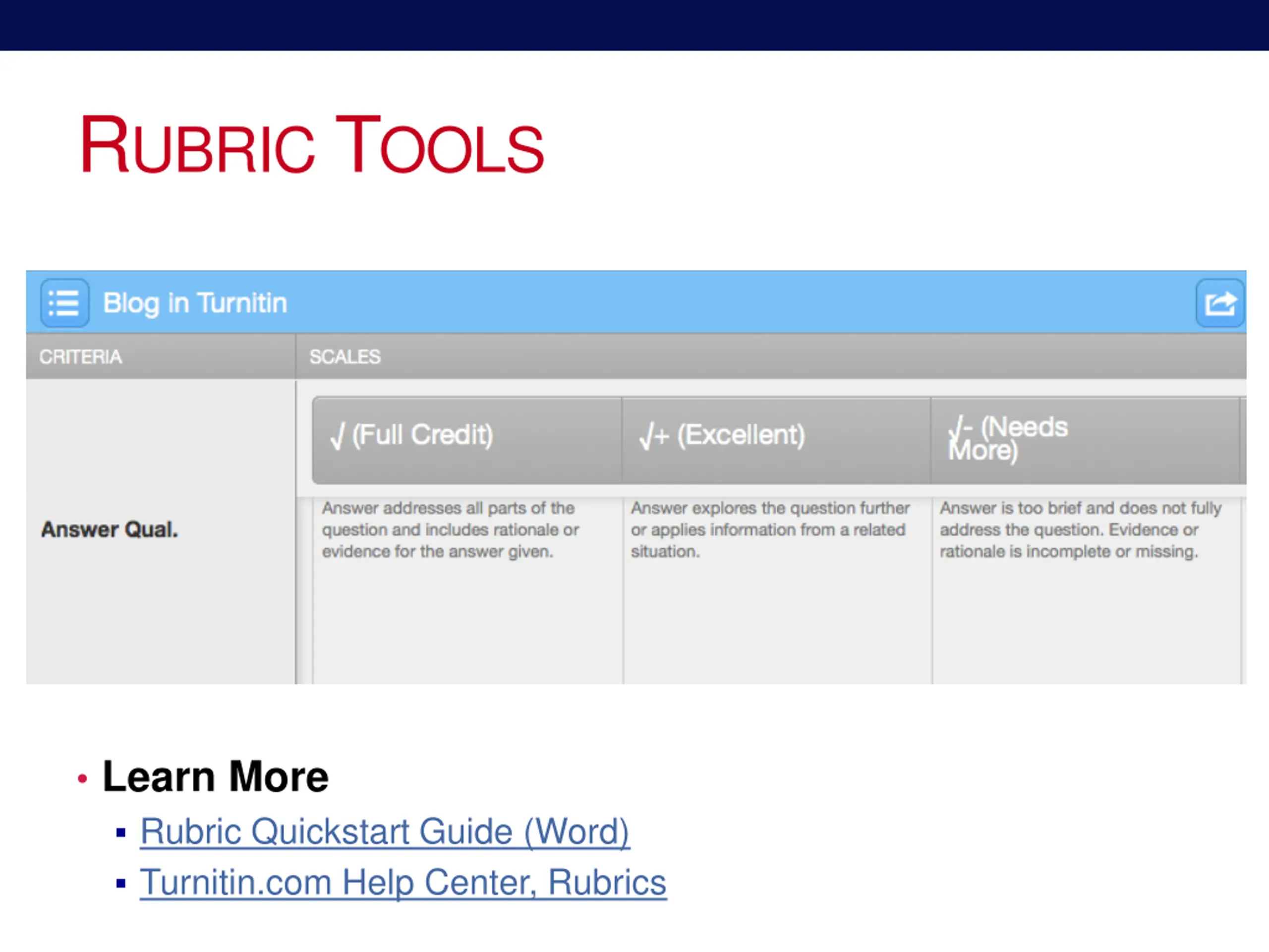 RUBRIC TOOLS Learn More Rubric Quickstart Guide (Word) Turnitin.com Help Center, Rubrics