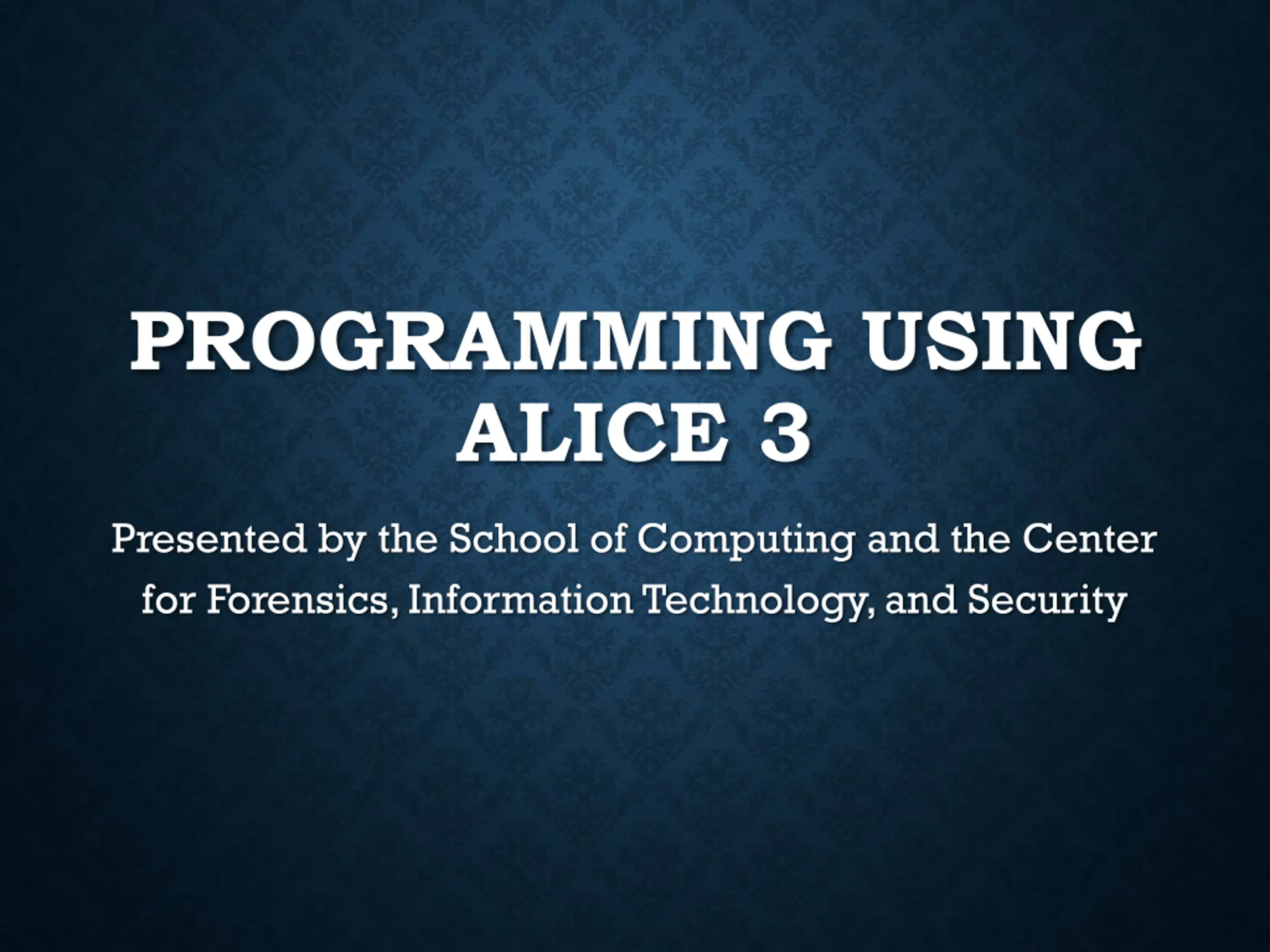 PROGRAMMING USING ALICE 3 Presented by the School of Computing and the Center for Forensics, Information Technology, and Security