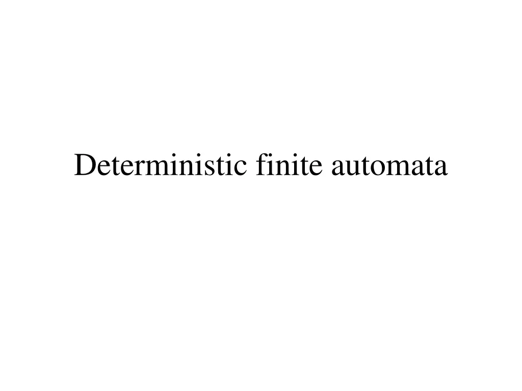 Deterministic Finite Automata A deterministic finite automaton (DFA) is a 5-tuple (Q, , , q0, F) where Q is a finite set of states is an alphabet : Q Q is a transition function q0 Q is the initial state F Q is a set of accepting states (or final states). In diagrams, the accepting states is be denoted by double loops (or plus)