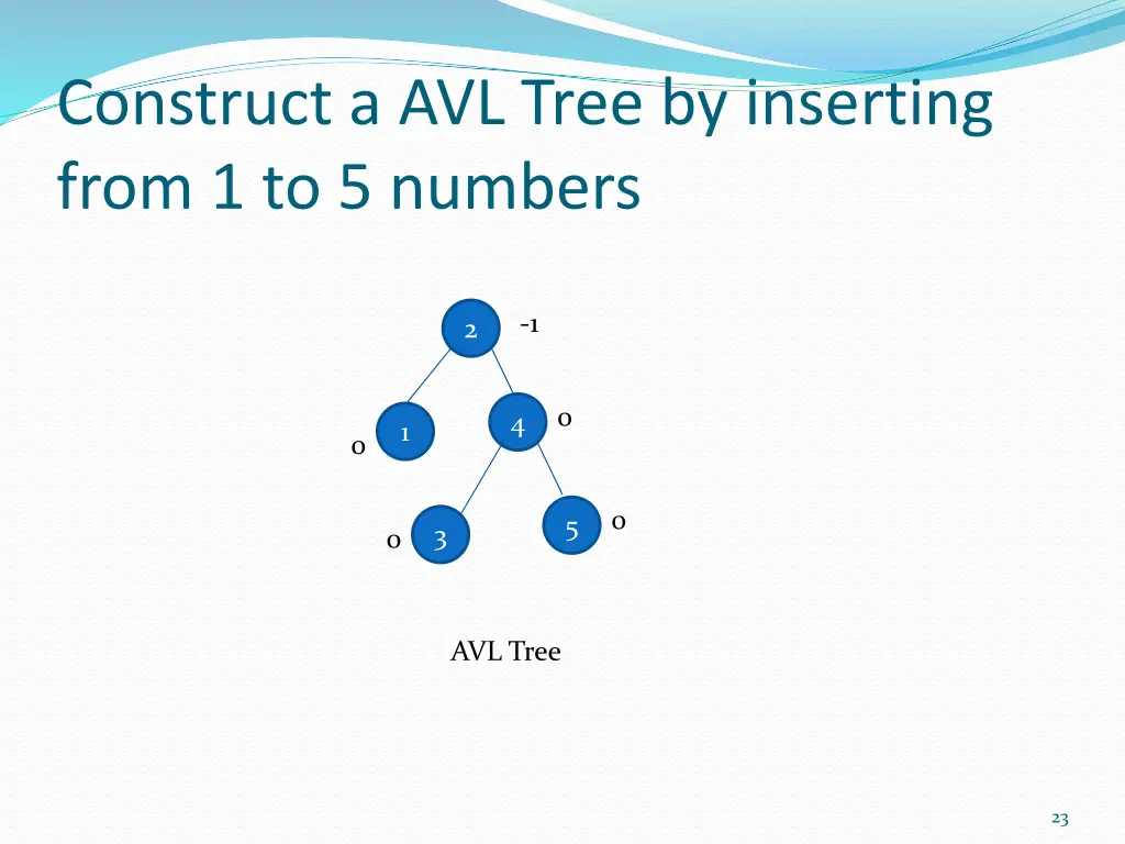 Construct a AVL Tree by inserting from 1 to 5 numbers -1 -2 2 2 0 2 4 5 -1 -2 0 1 3 1 3 0 1 3 0 0 0 -1 4 4 After Rotation 0 5 22