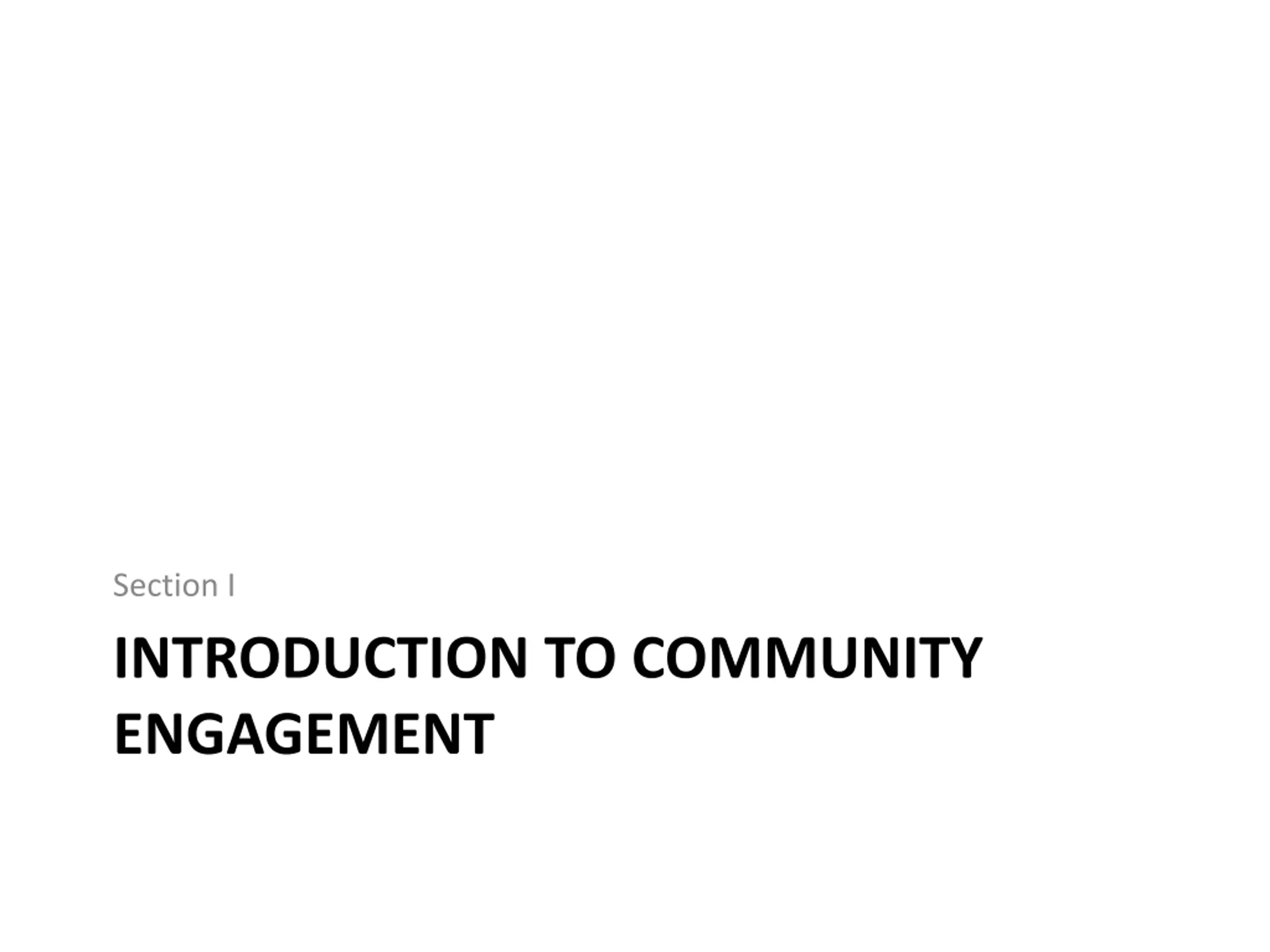 Section I INTRODUCTION TO COMMUNITY ENGAGEMENT