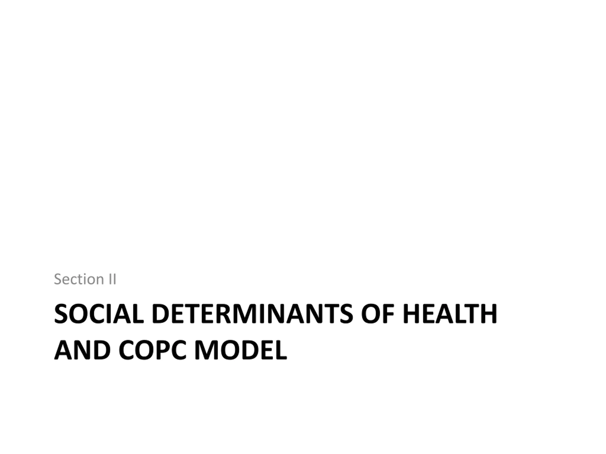 Section II SOCIAL DETERMINANTS OF HEALTH AND COPC MODEL
