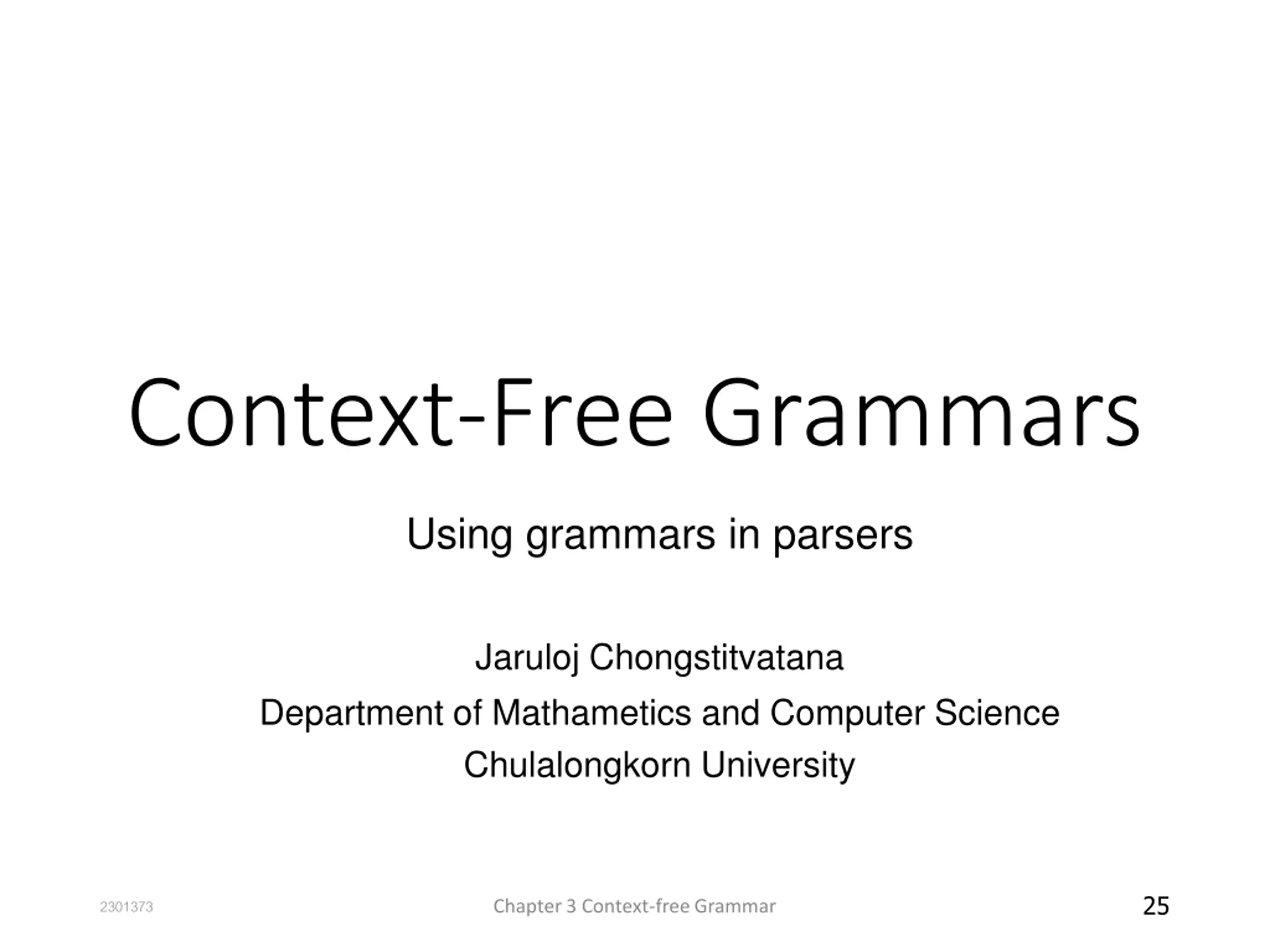 Context-Free Grammars Using grammars in parsers Jaruloj Chongstitvatana Department of Mathametics and Computer Science Chulalongkorn University 25 2301373 Chapter 3 Context-free Grammar