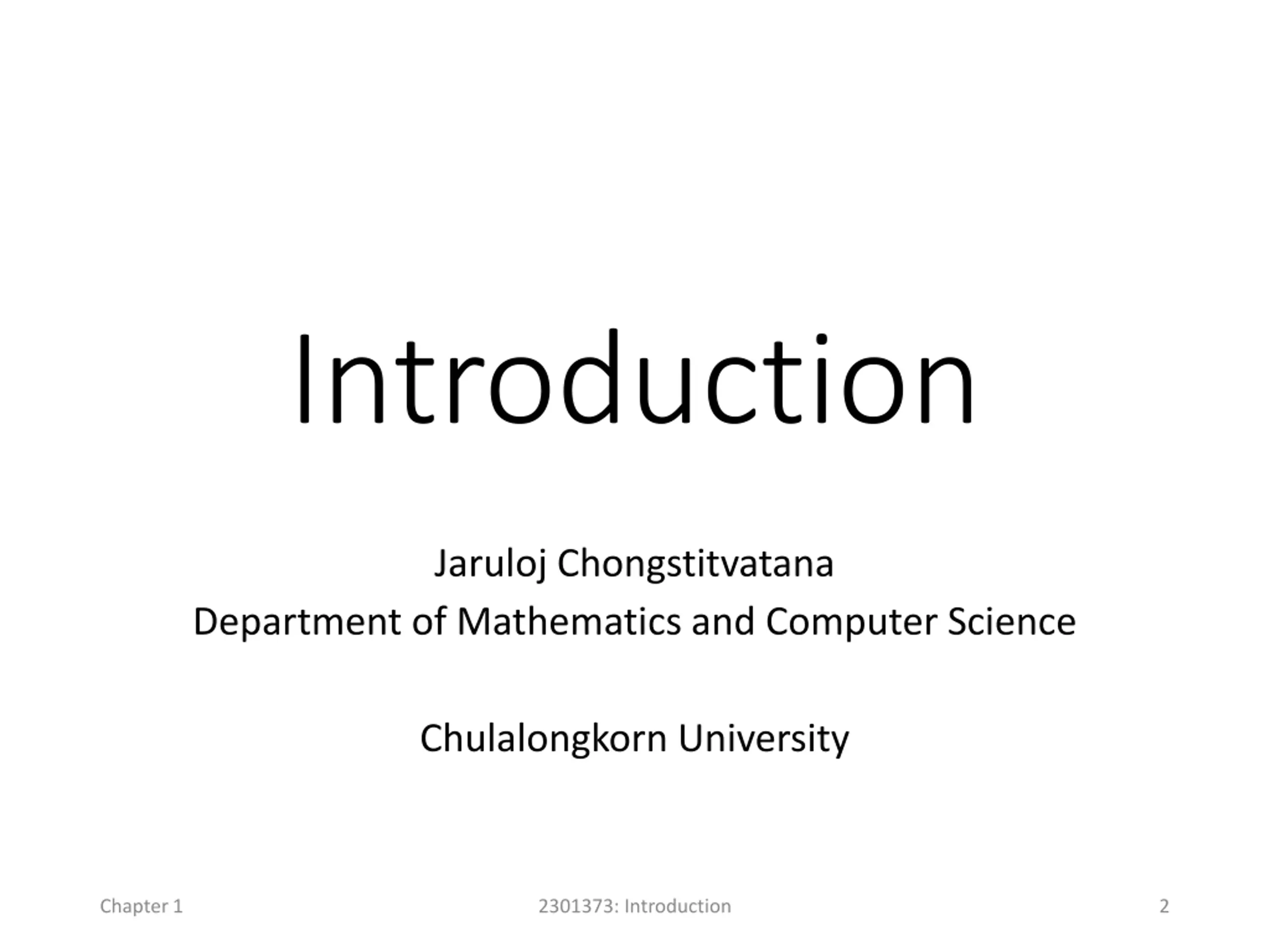 Introduction Jaruloj Chongstitvatana Department of Mathematics and Computer Science Chulalongkorn University Chapter 1 2301373: Introduction 2