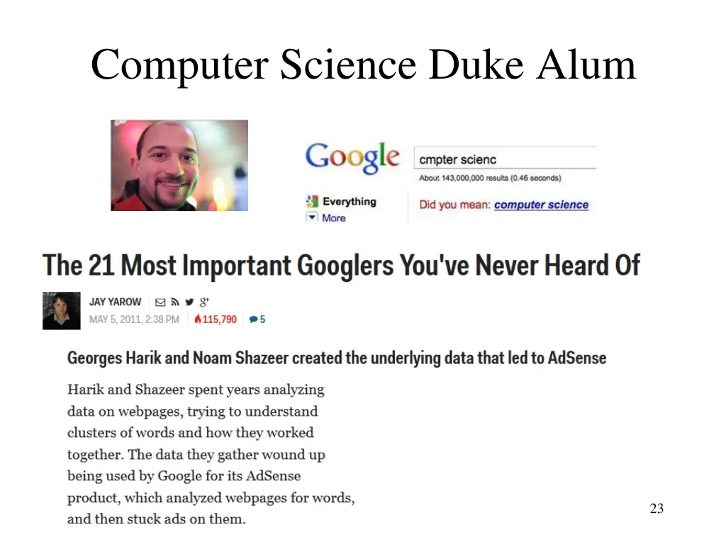 Computer Science Duke Alum compsci 101, spring 2017 23