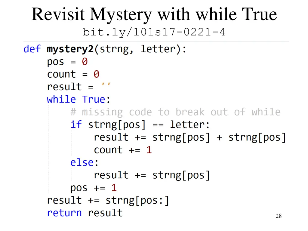 Revisit Mystery with while True bit.ly/101s17-0221-4 28