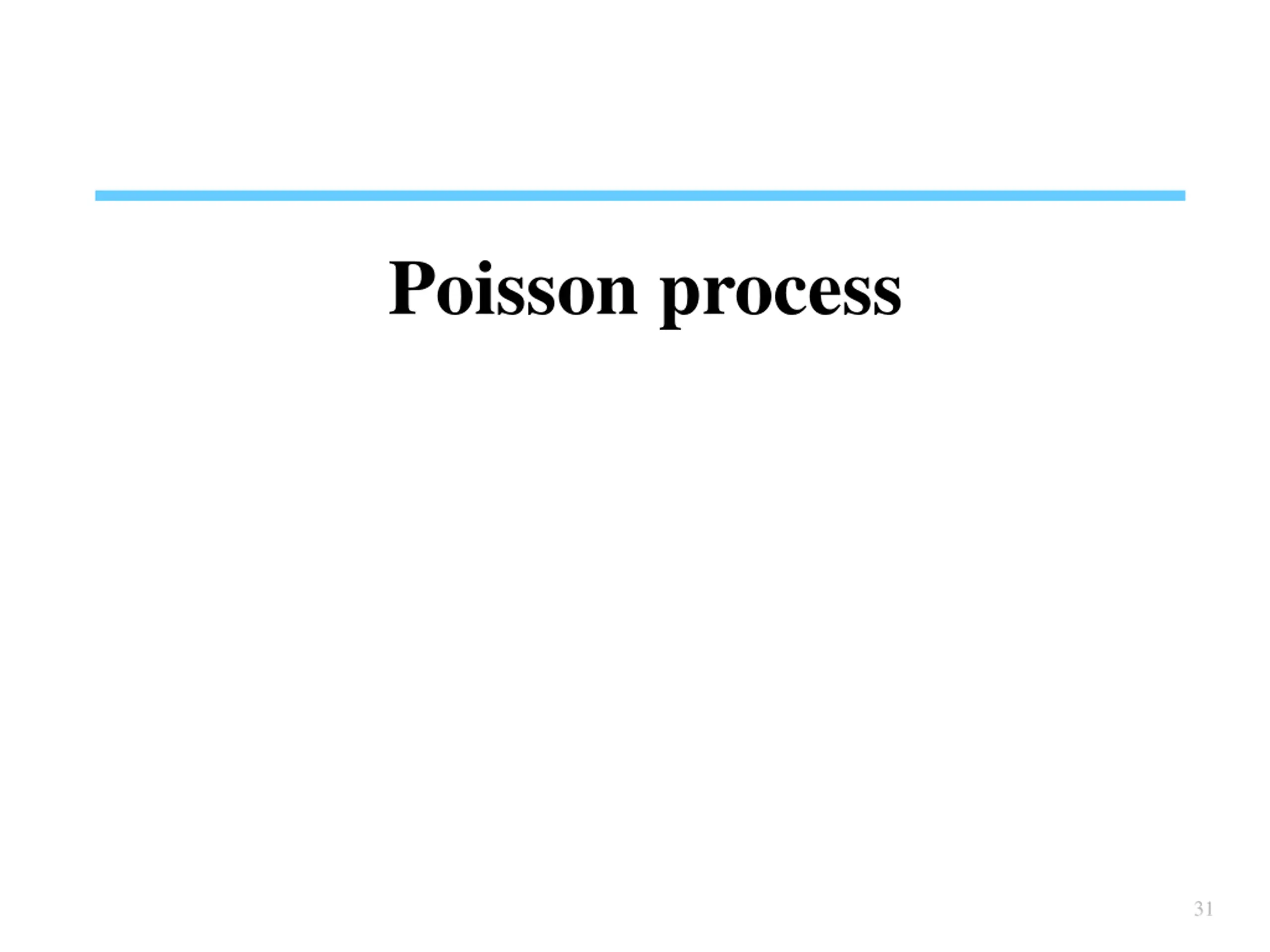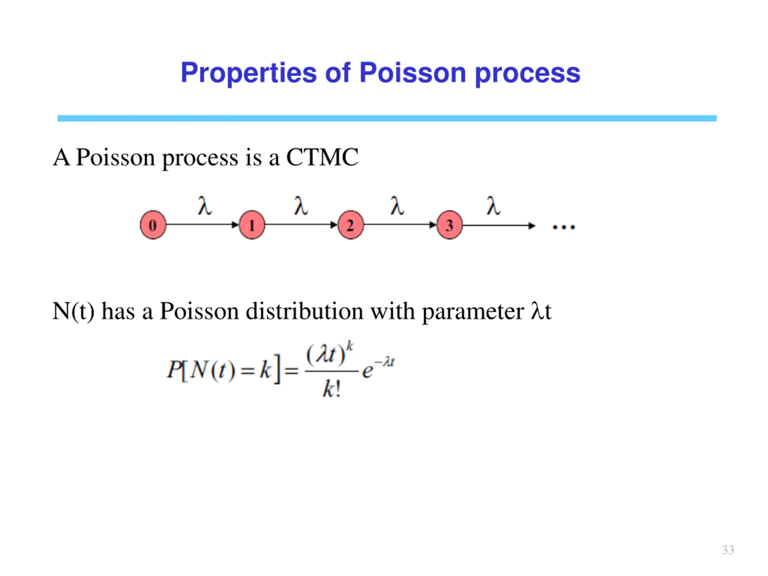 Properties of Poisson process A Poisson process is a CTMC N(t) has a Poisson distribution with parameter t 33