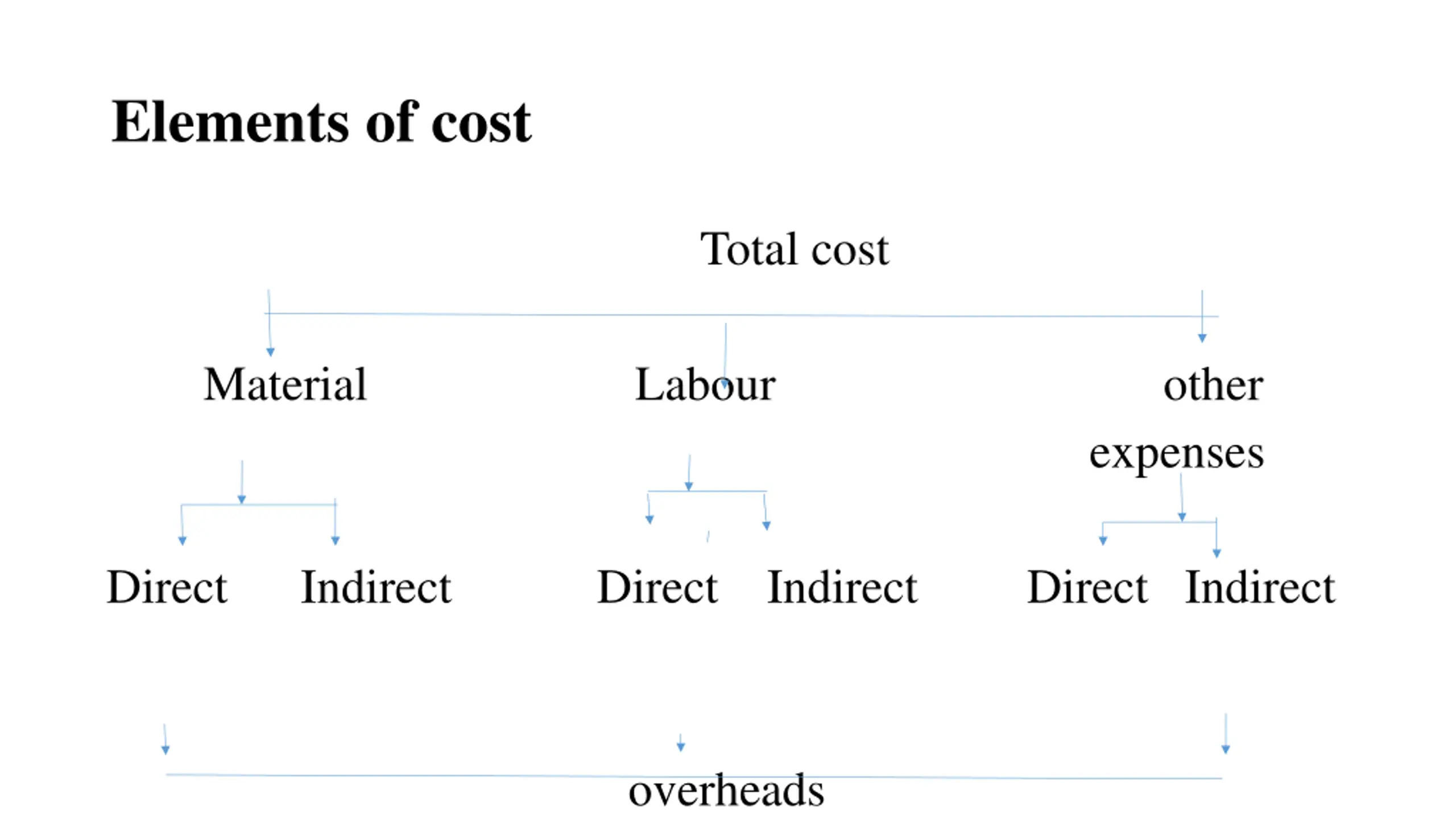 Elements of cost Total cost Material Labour other expenses Direct Indirect Direct Indirect Direct Indirect overheads