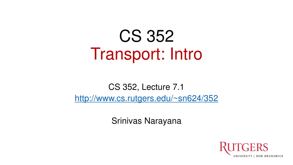 CS 352 Transport: Intro CS 352, Lecture 7.1 http://www.cs.rutgers.edu/~sn624/352 Srinivas Narayana 1