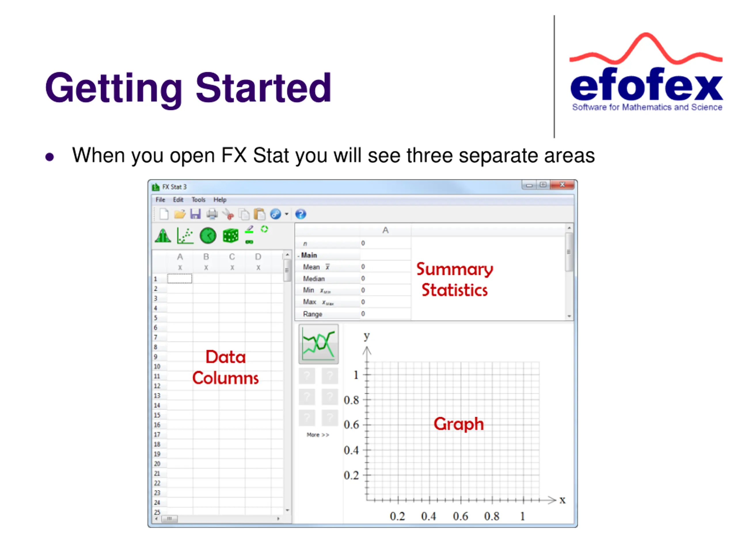 Getting Started When you open FX Stat you will see three separate areas