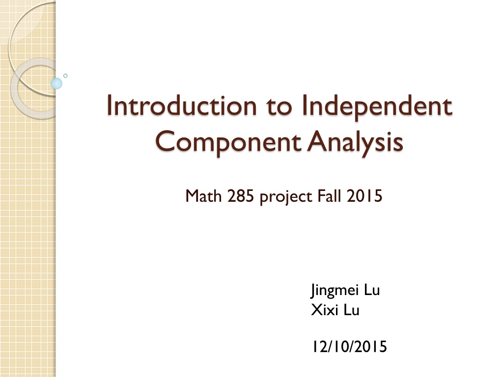 Introduction to Independent Component Analysis Math 285 project Fall 2015 Jingmei Lu Xixi Lu 12/10/2015