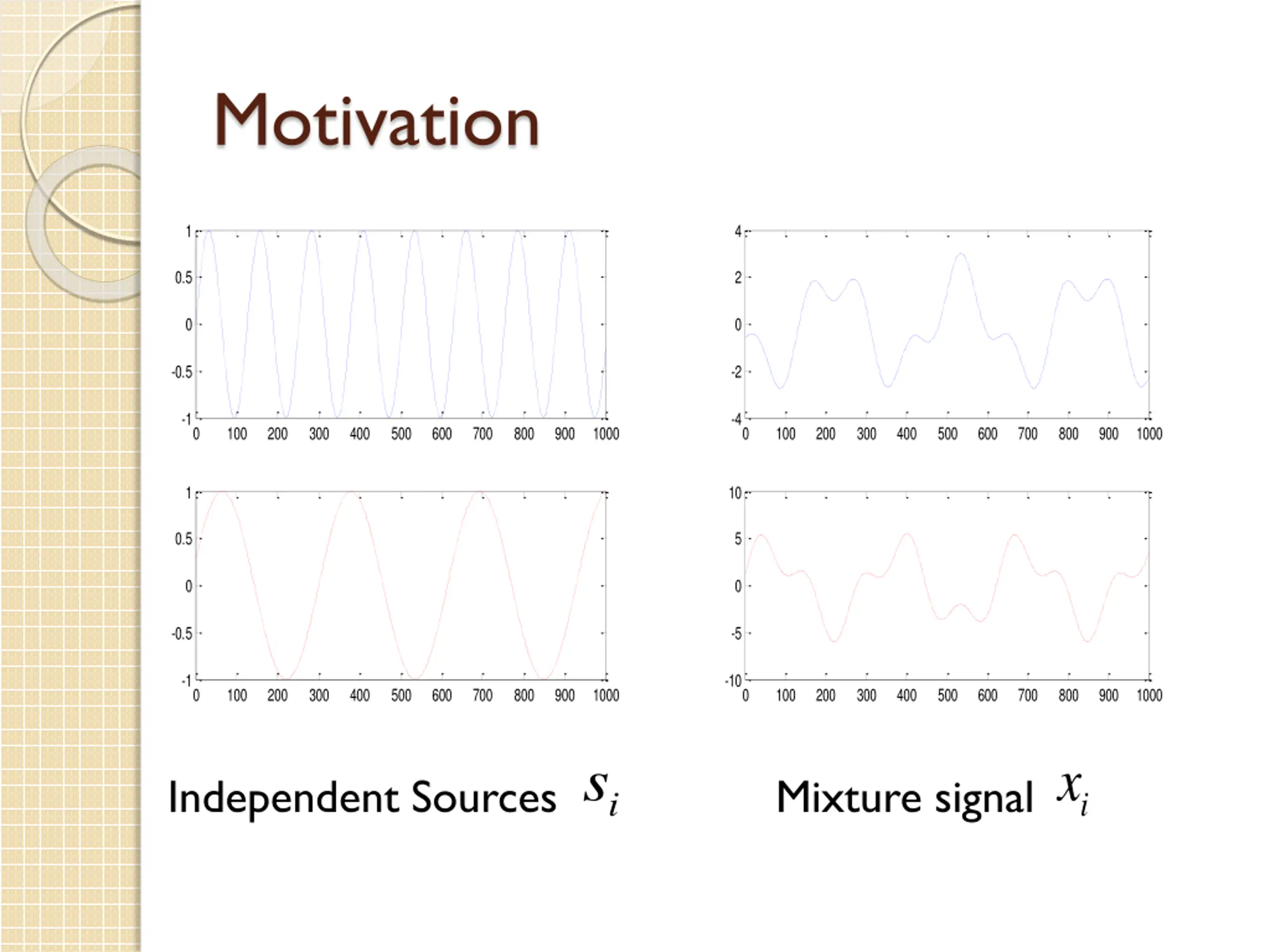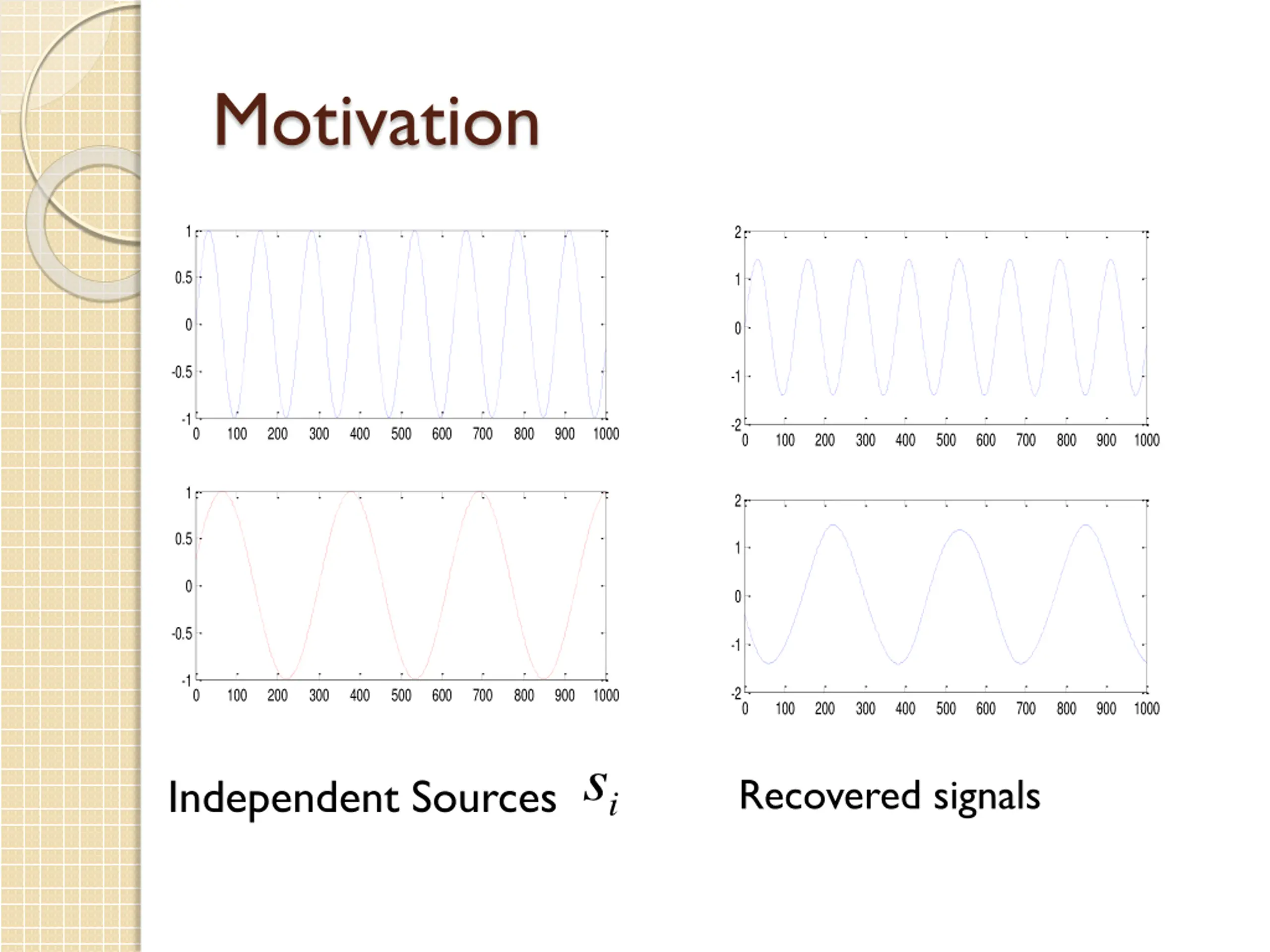 Motivation 1 2 0.5 1 0 0 -0.5 -1 -1 -2 0 100 200 300 400 500 600 700 800 900 1000 0 100 200 300 400 500 600 700 800 900 1000 1 2 0.5 1 0 0 -0.5 -1 -1 -2 0 100 200 300 400 500 600 700 800 900 1000 0 100 200 300 400 500 600 700 800 900 1000 is Recovered signals Independent Sources