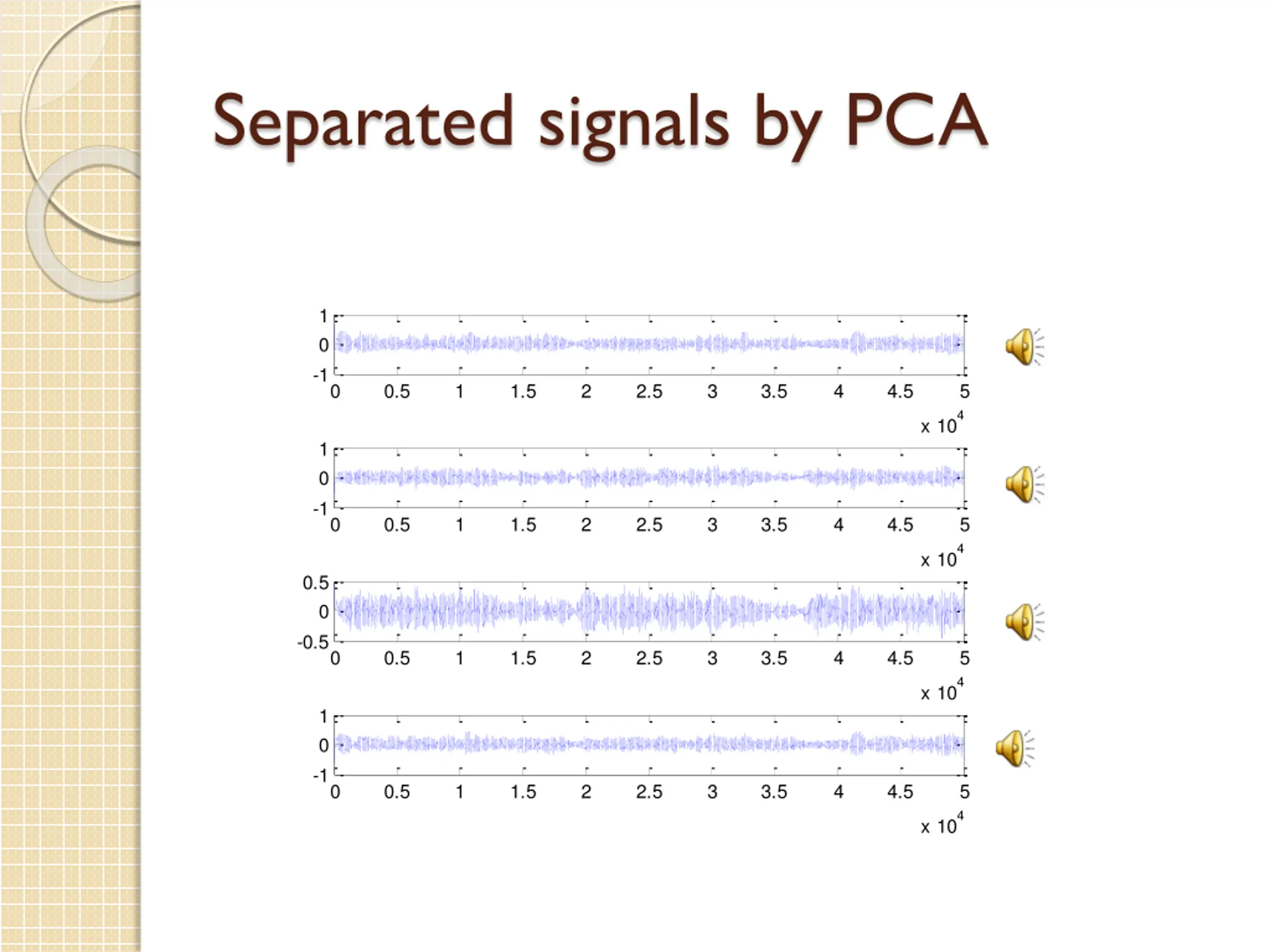 Separated signals by PCA 1 0 -1 0 0.5 1 1.5 2 2.5 3 3.5 4 4.5 5 4 x 10 1 0 -1 0 0.5 1 1.5 2 2.5 3 3.5 4 4.5 5 4 x 10 0.5 0 -0.5 0 0.5 1 1.5 2 2.5 3 3.5 4 4.5 5 4 x 10 1 0 -1 0 0.5 1 1.5 2 2.5 3 3.5 4 4.5 5 4 x 10