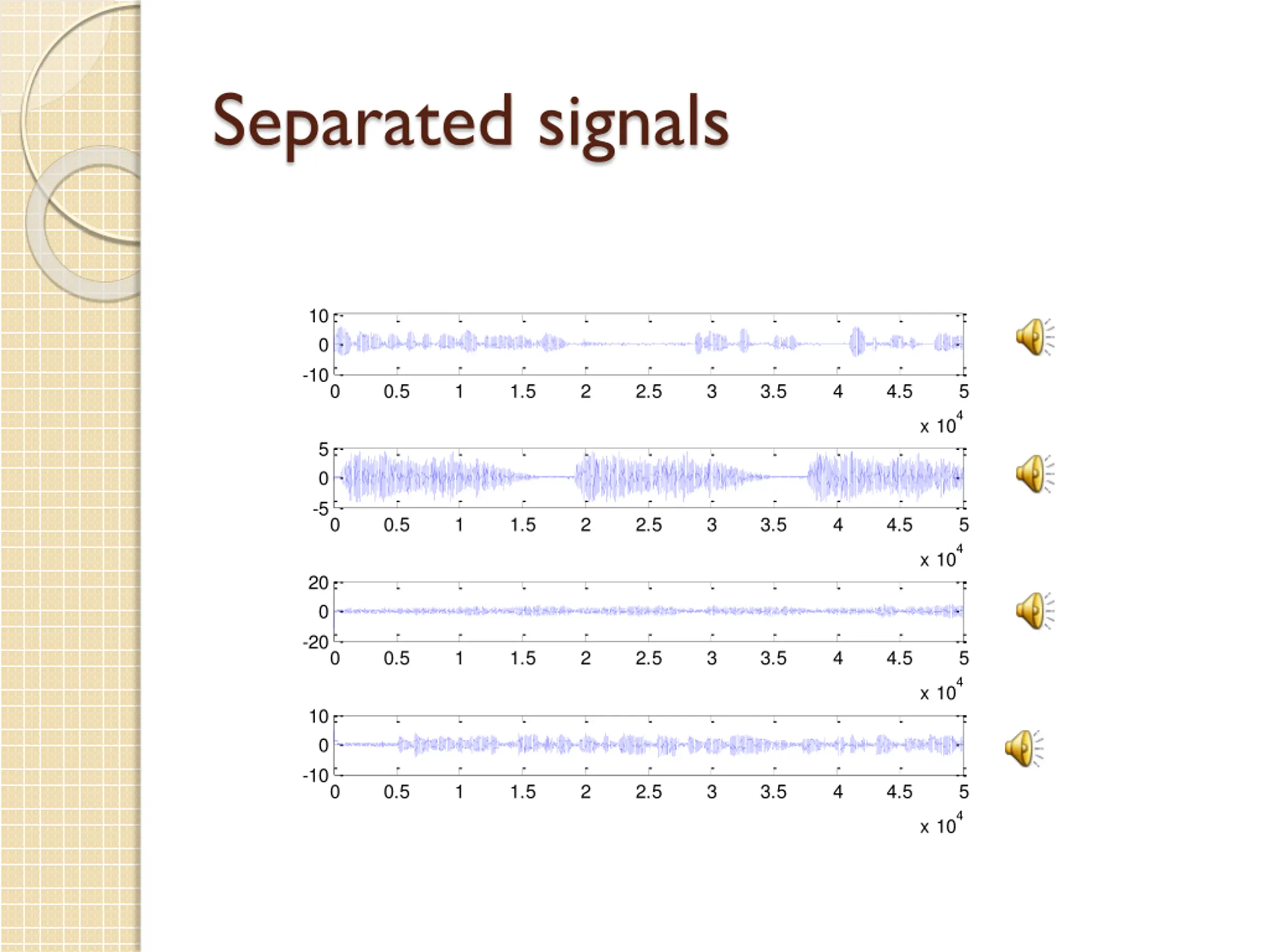 Separated signals 10 0 -10 0 0.5 1 1.5 2 2.5 3 3.5 4 4.5 5 4 x 10 5 0 -5 0 0.5 1 1.5 2 2.5 3 3.5 4 4.5 5 4 x 10 20 0 -20 0 0.5 1 1.5 2 2.5 3 3.5 4 4.5 5 4 x 10 10 0 -10 0 0.5 1 1.5 2 2.5 3 3.5 4 4.5 5 4 x 10