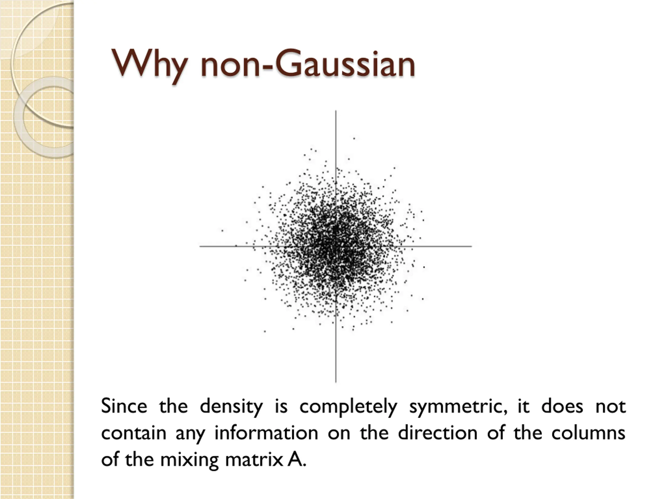 Why non-Gaussian Since the density is completely symmetric, it does not contain any information on the direction of the columns of the mixing matrix A.