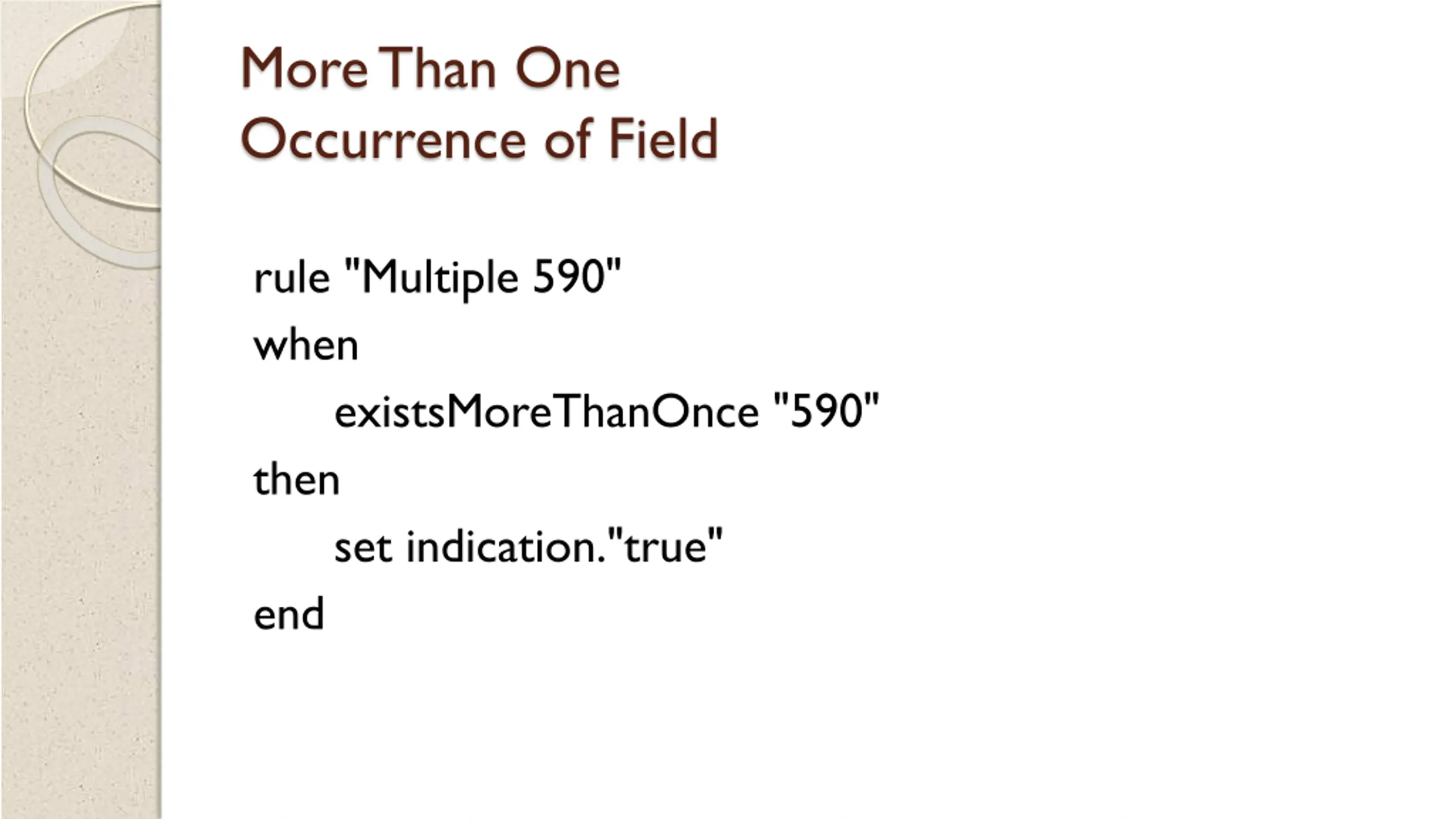 More Than One Occurrence of Field rule "Multiple 590" when existsMoreThanOnce "590" then set indication."true" end